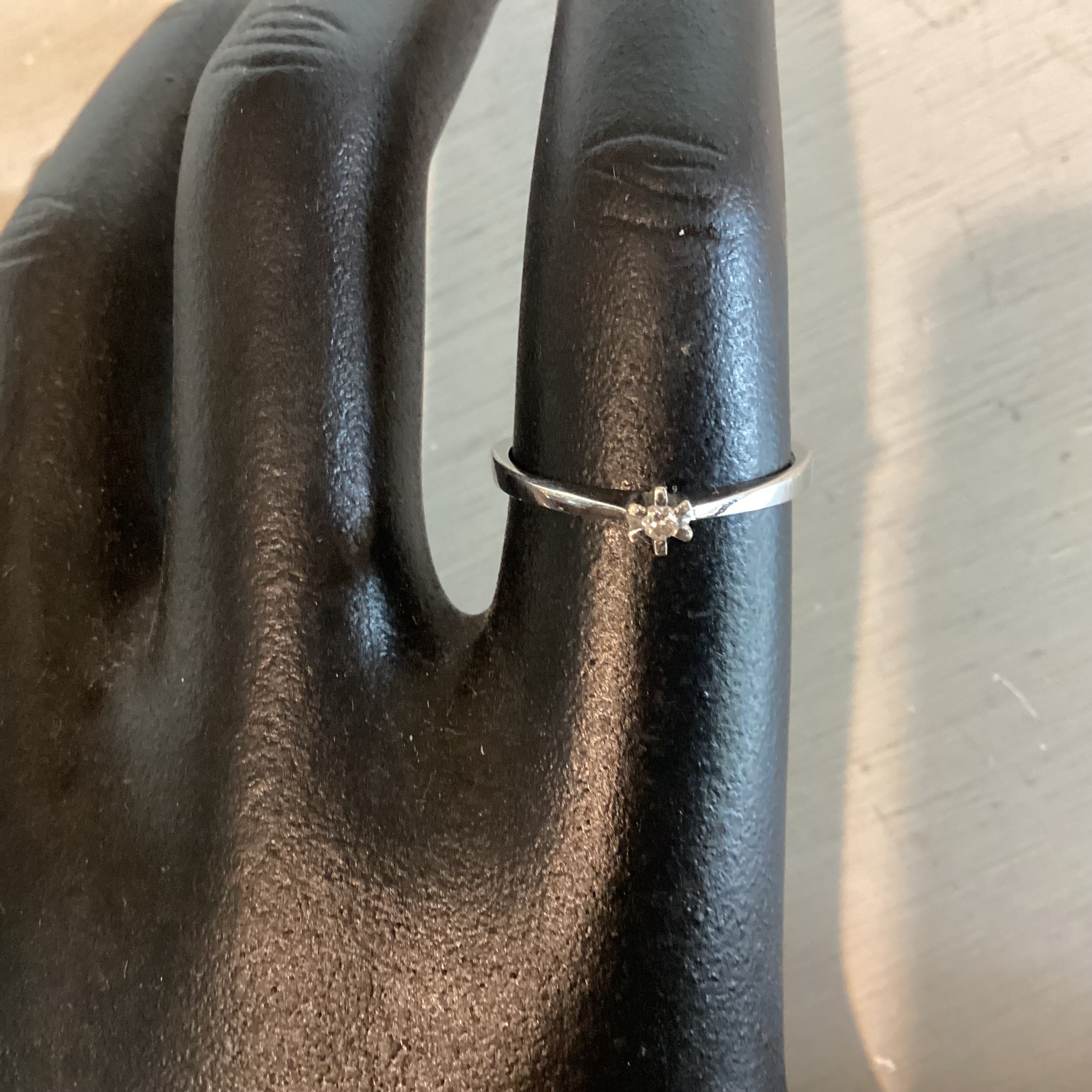 hvidguld med diamant. Bemærk den flotte ringskinne.