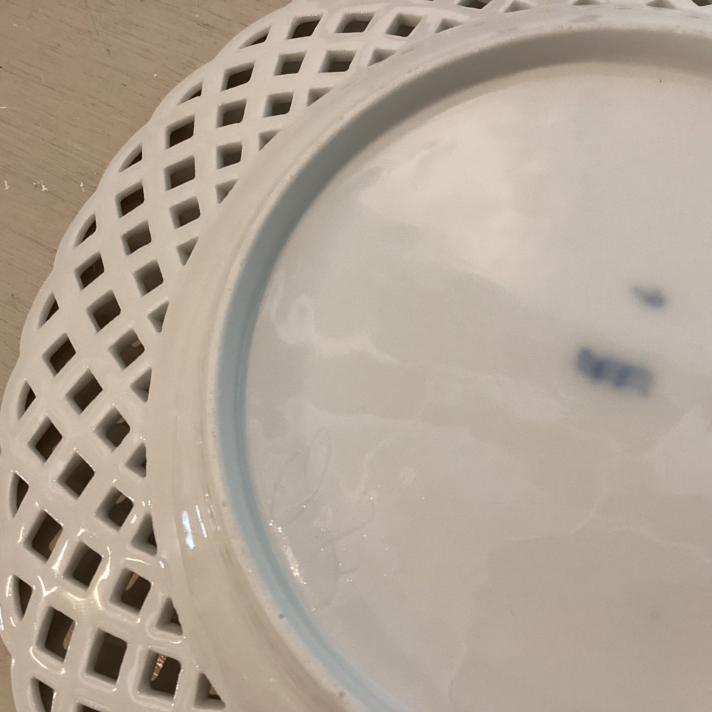 Antik Dobbeltblonde musselmalet tallerken 23 cm. i håndmalet