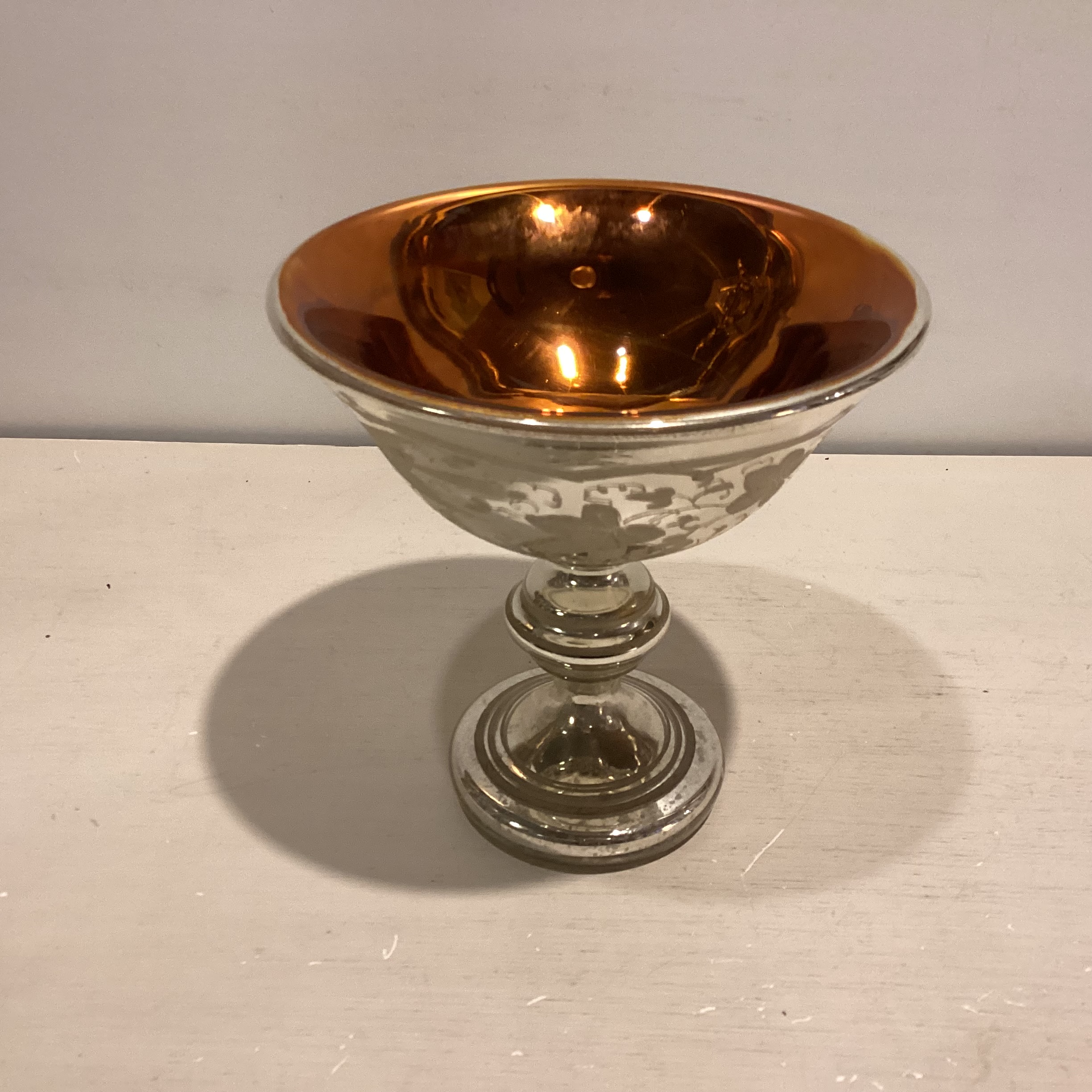 skålen er “forgyldt” indvendigt i en meget flot guldfarve. Flot stand.