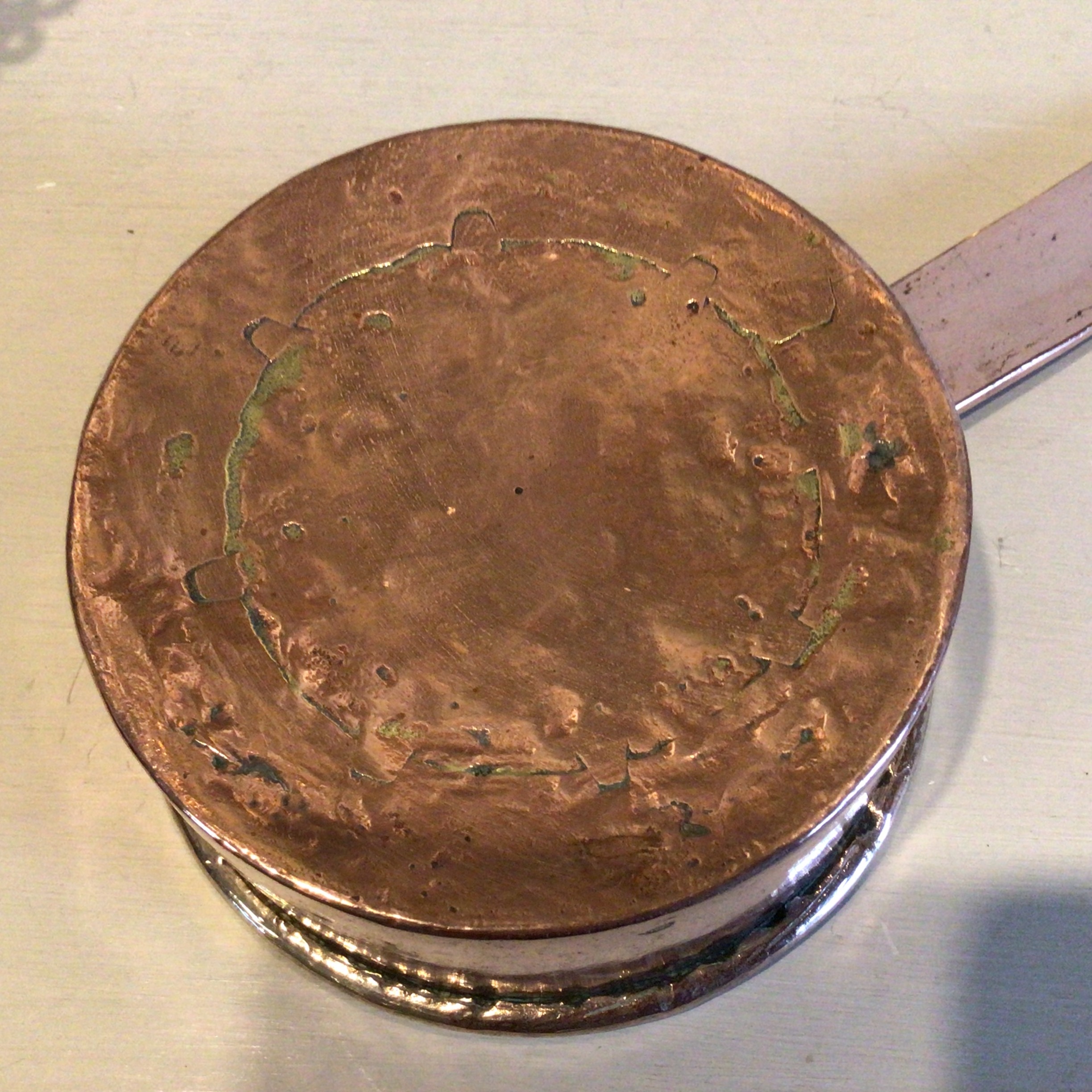Antik kobber kasserolle. Den kraftige kasserolle