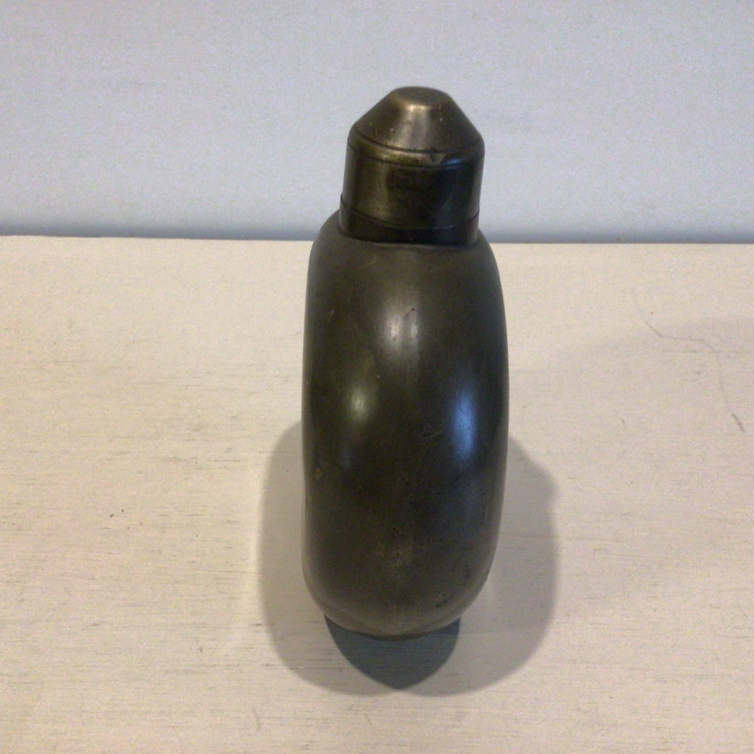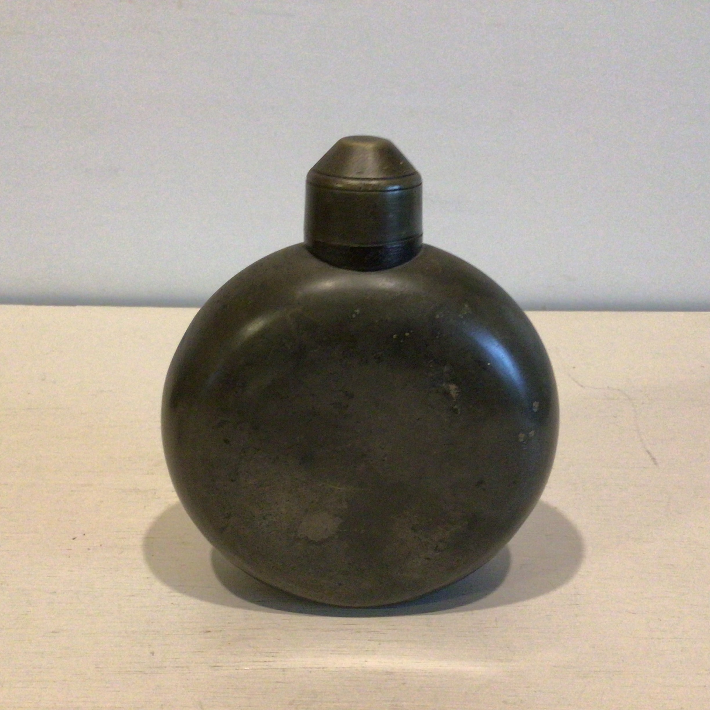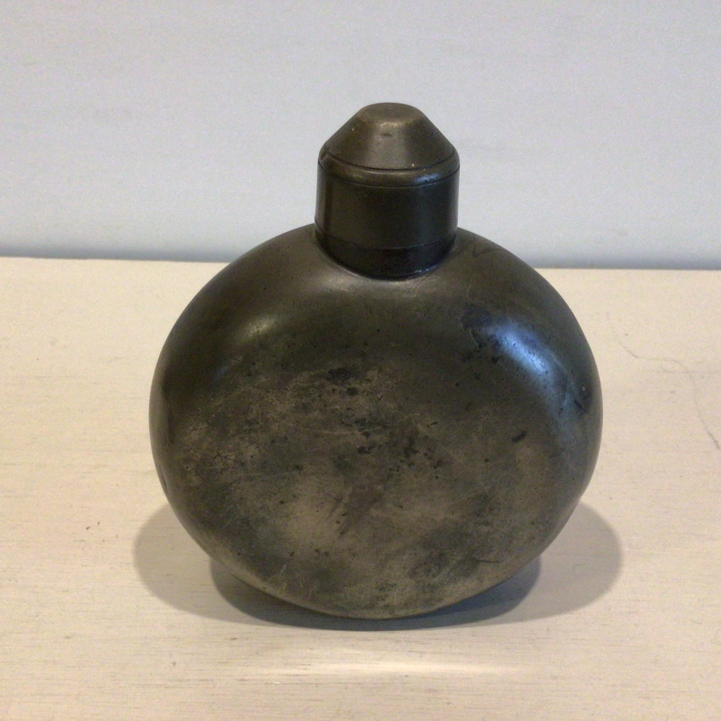 Antik rund Lommelærke i tin. Lommelærken er flad