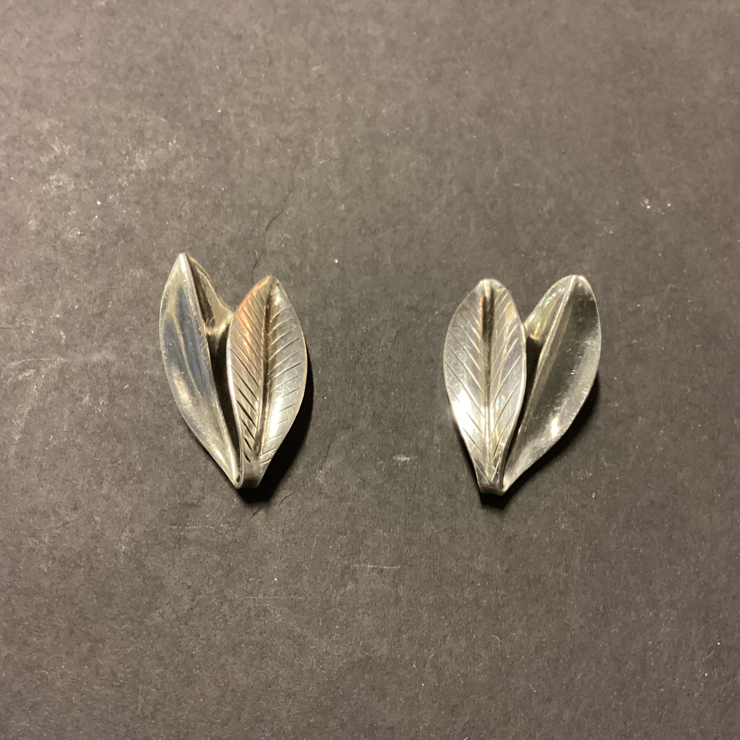 Vintage Øreclips sterling sølv i form af to sammensatte blade med