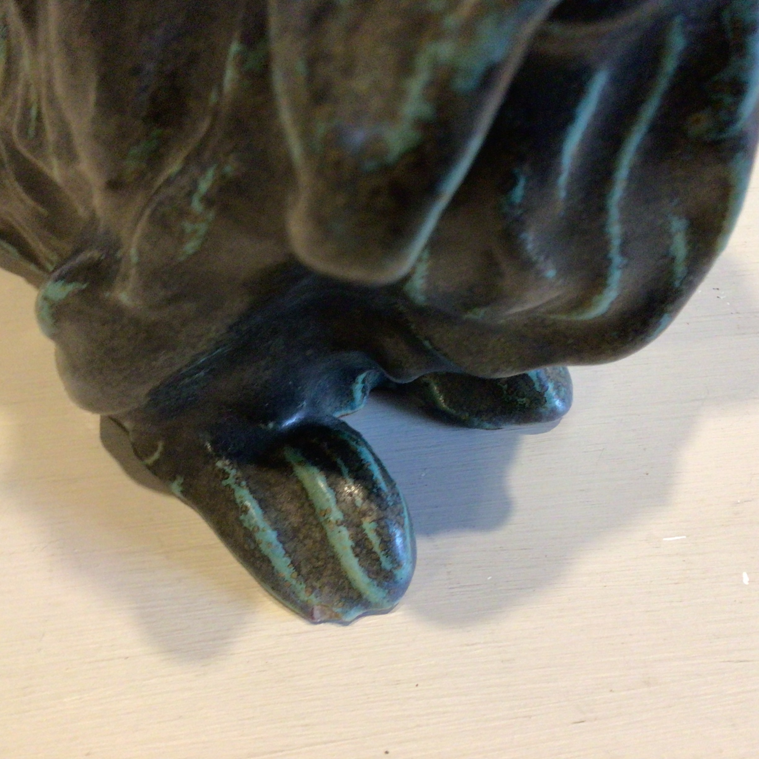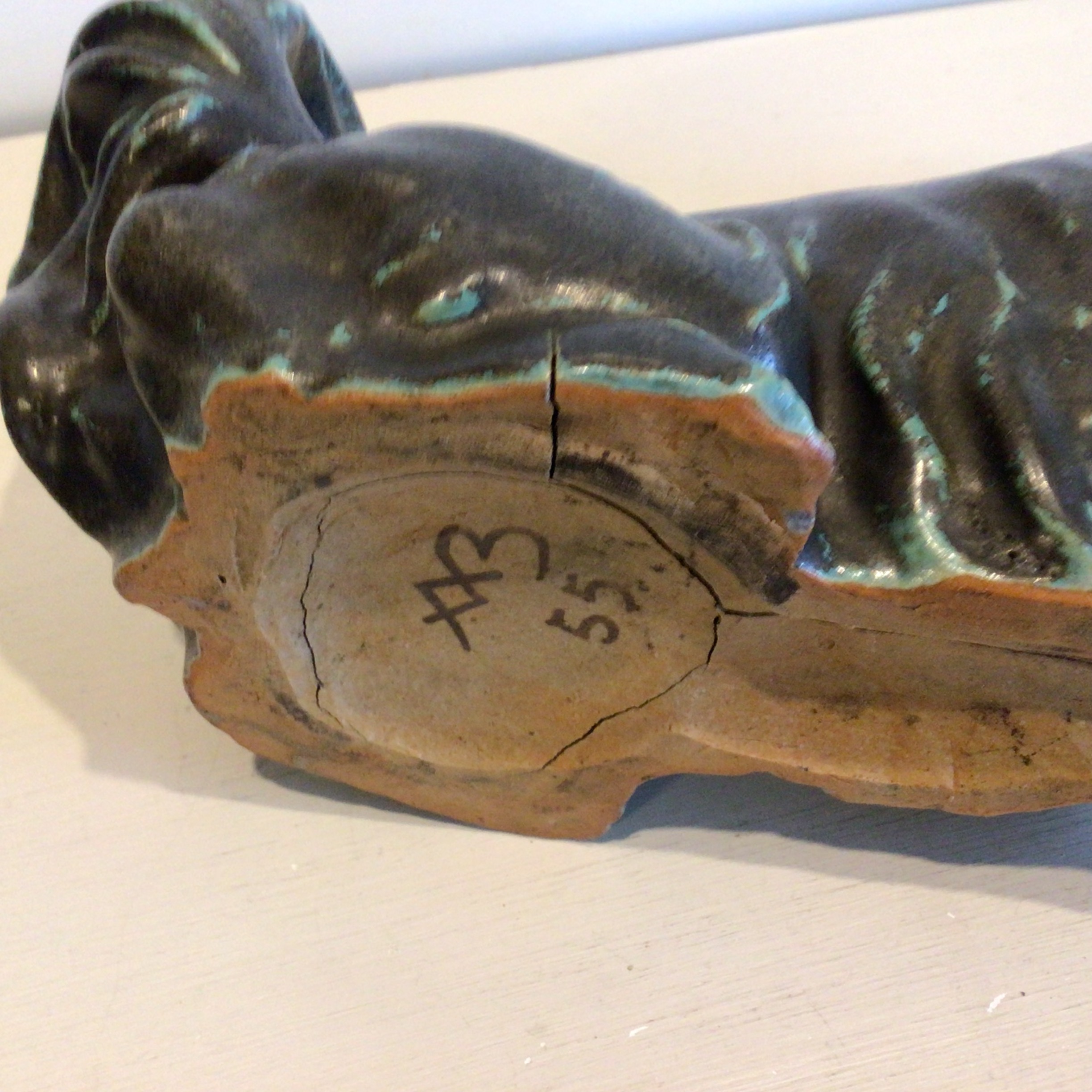 i stentøj er i en flot grå / grøn glasur. Medfødte fejl under bunden.