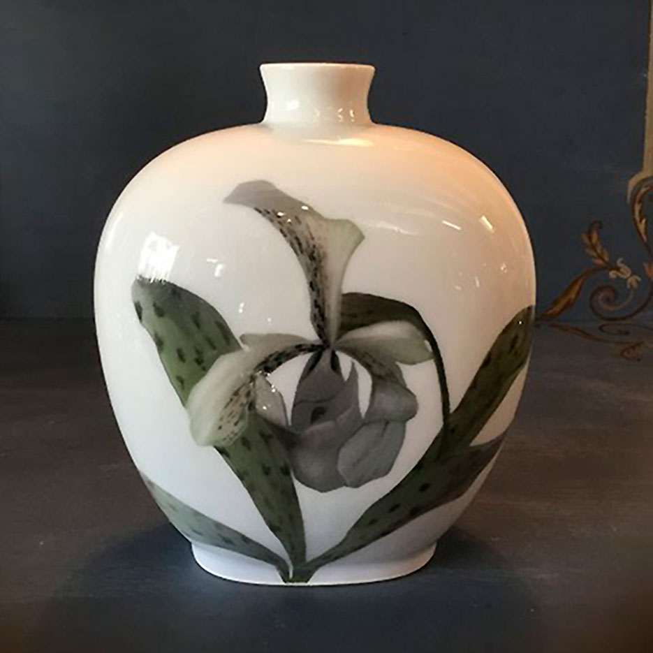 Royal Copenhagen Art Nouveau vase. Den er smukt dekoreret med en orkide
