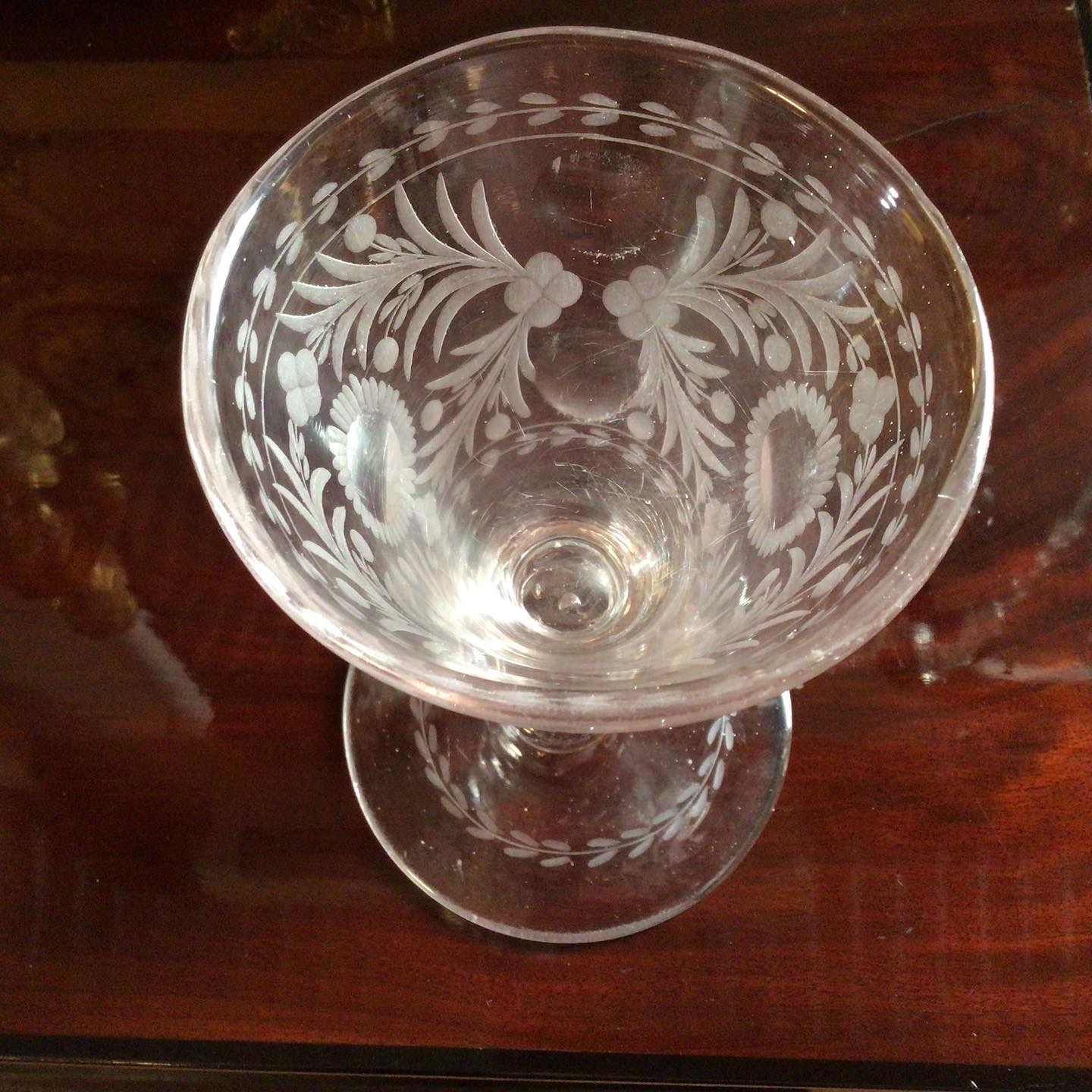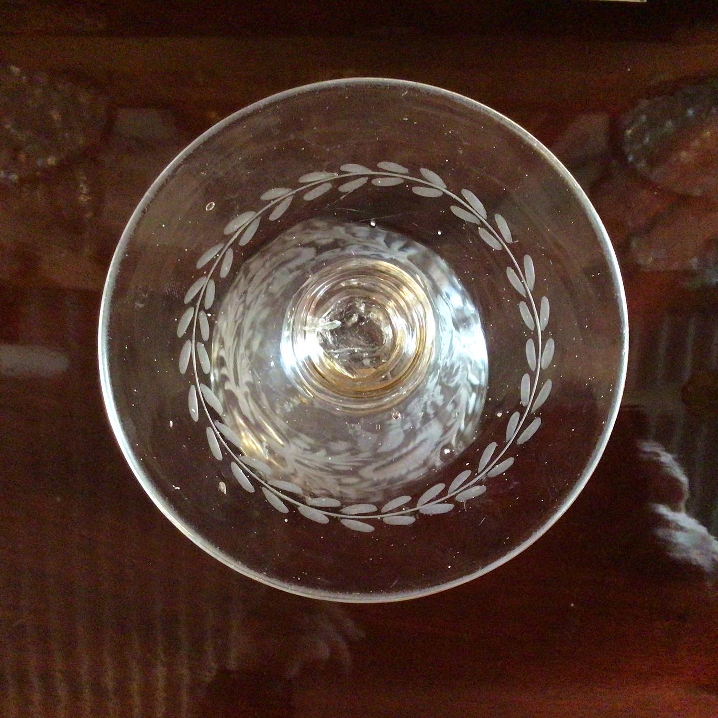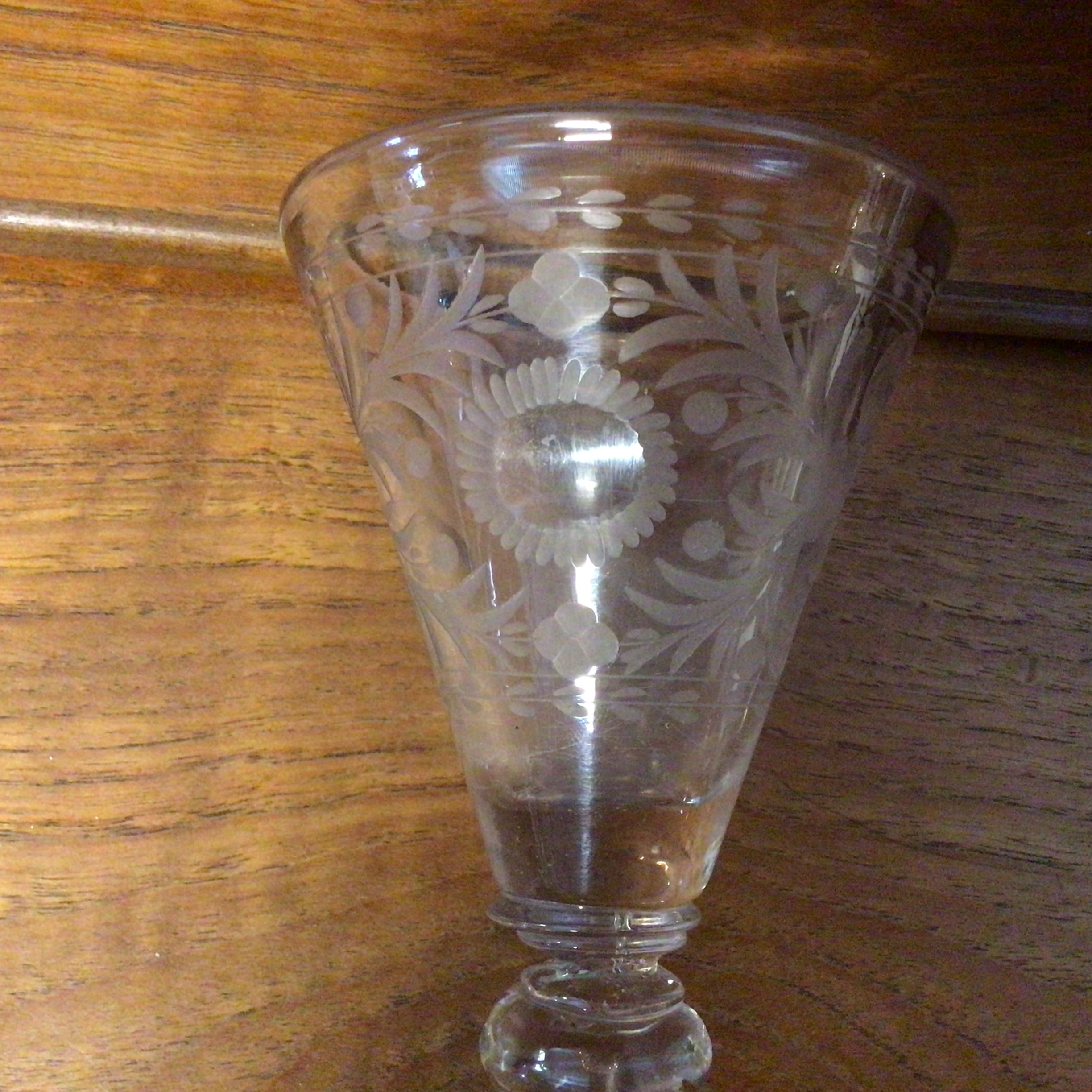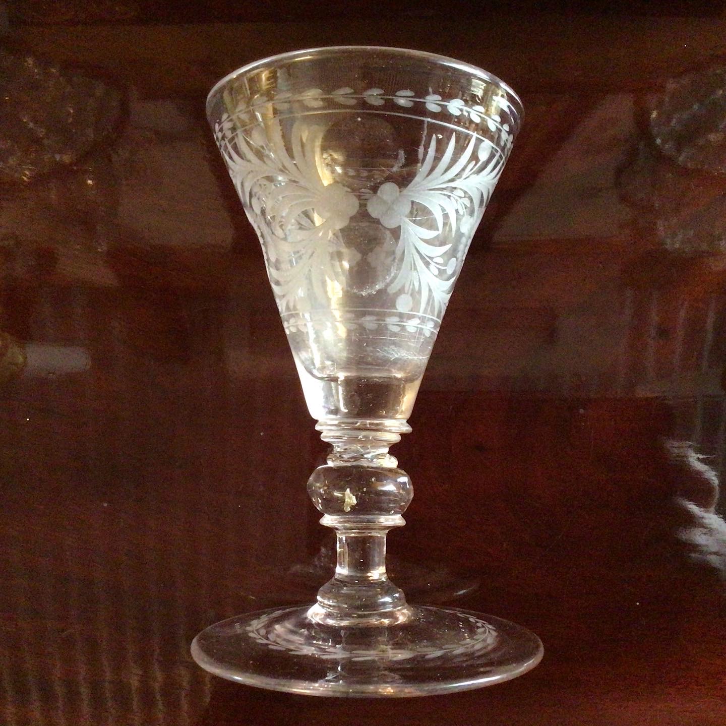 Barok Vinglas med graveringer på den tragtformet kumme.