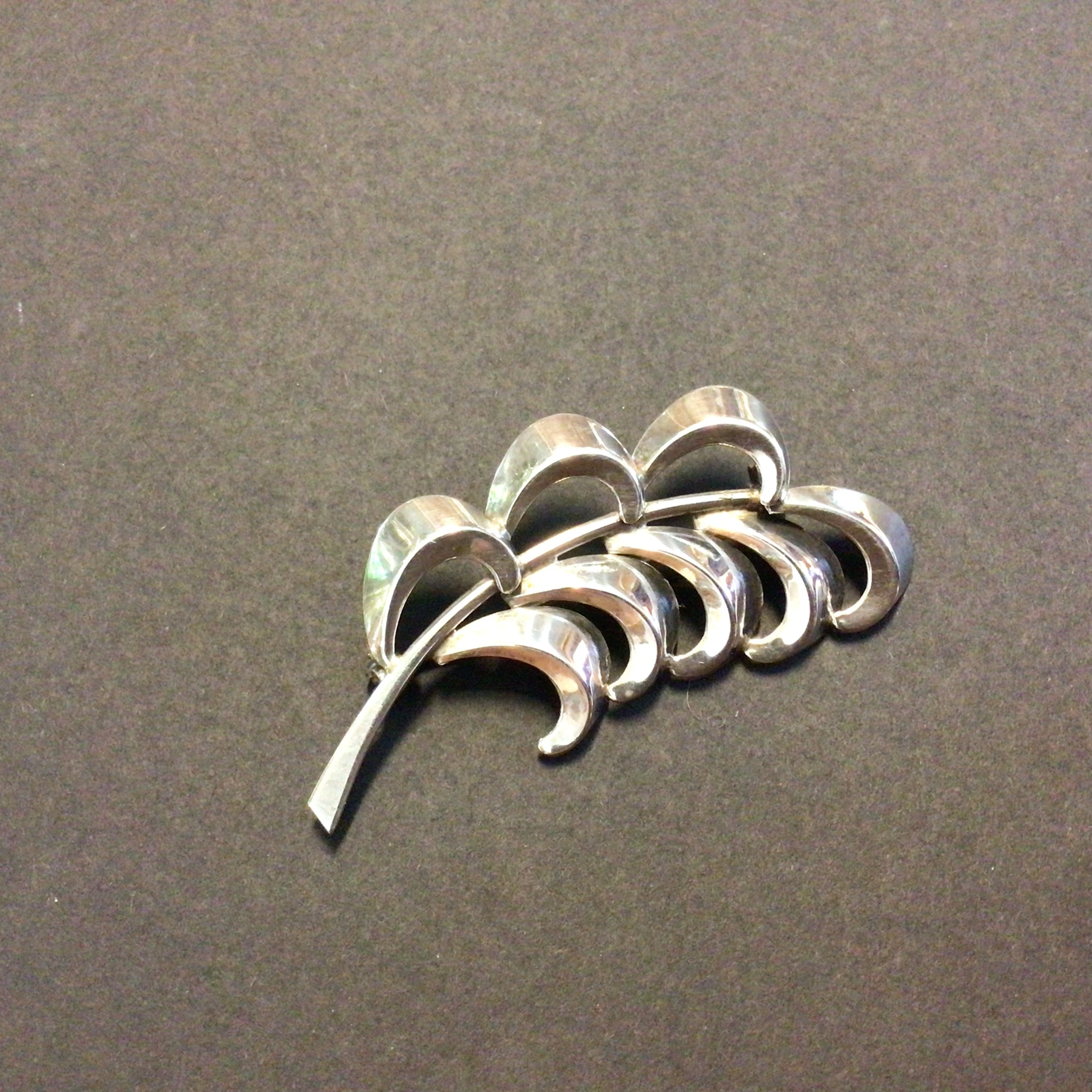 gennembrudt broche sterling sølv har form som et blad med stilk
