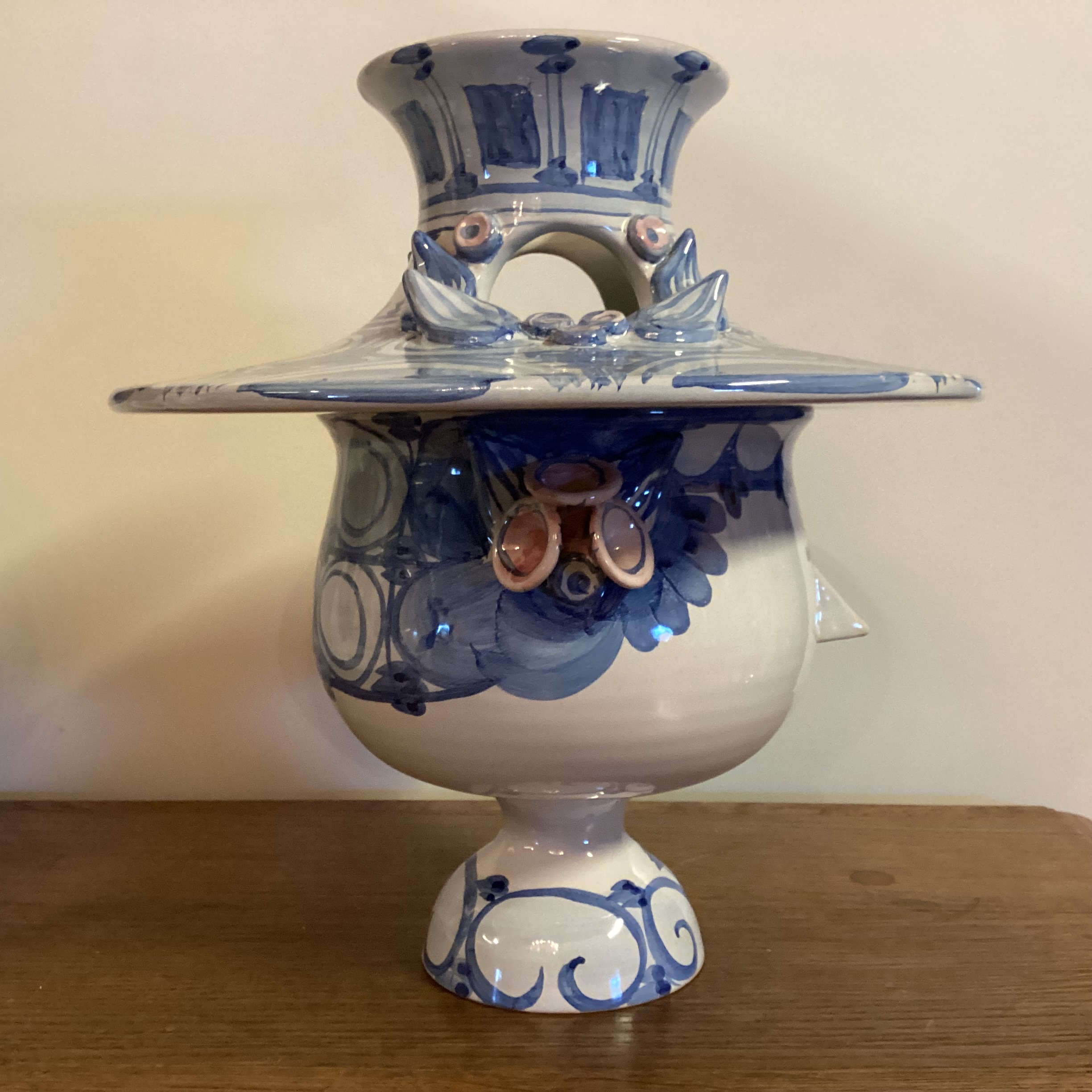 hat som låg med hul i toppen til blomster. Signeret monogram