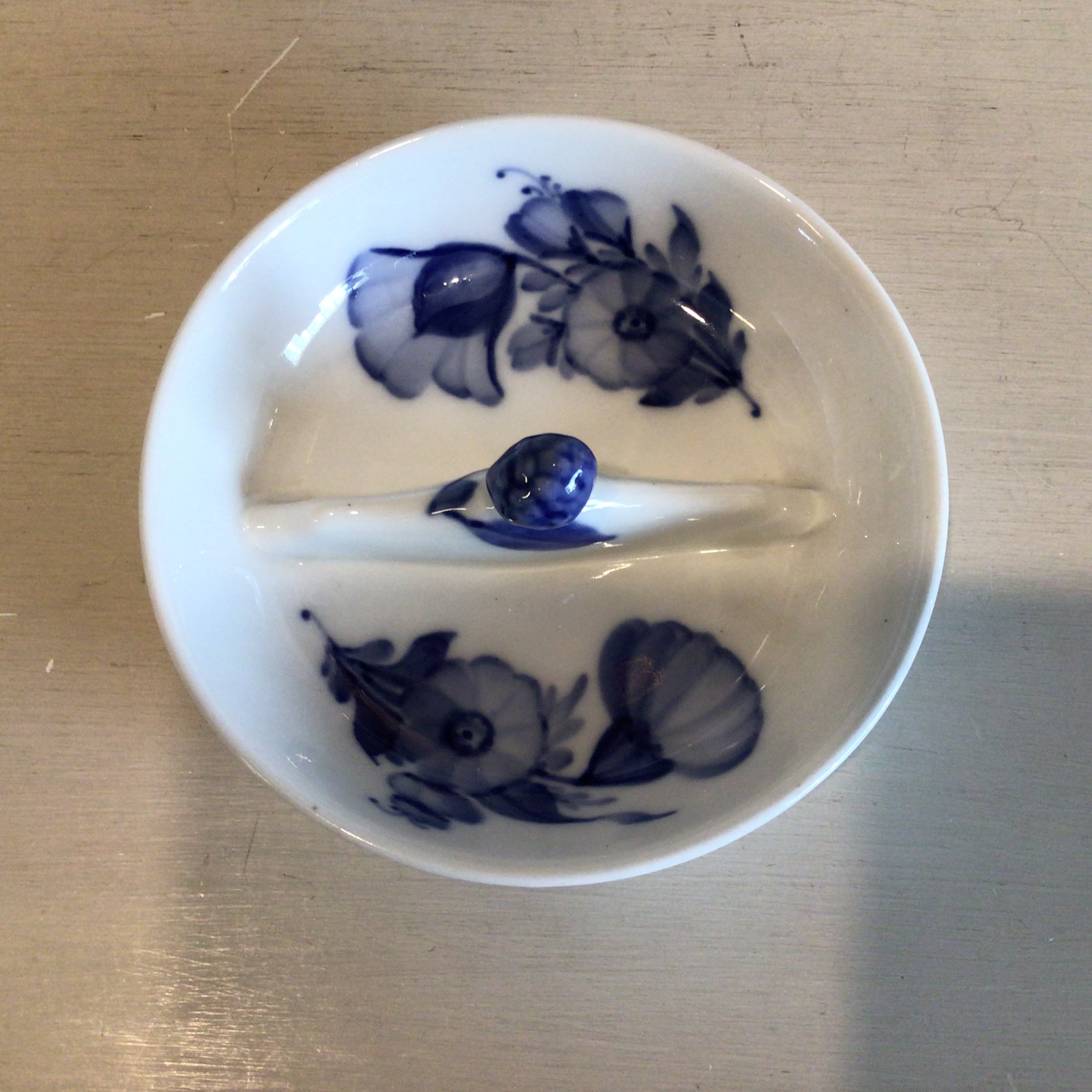 todelt asiet #8255 er i flettet håndmalet Kongeligt porcelæn.