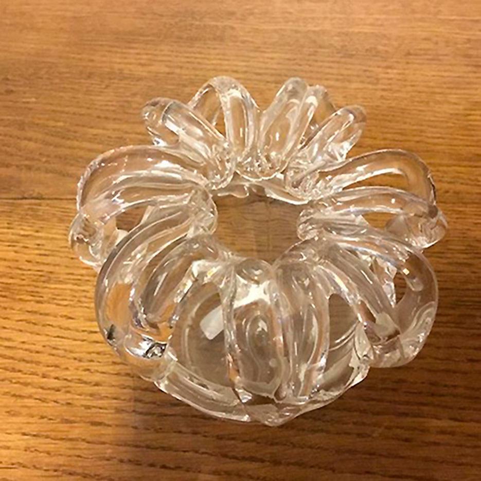 Dekorativ glas brudekrone / blomstervase. Mundblæst med optiske striber som ender
