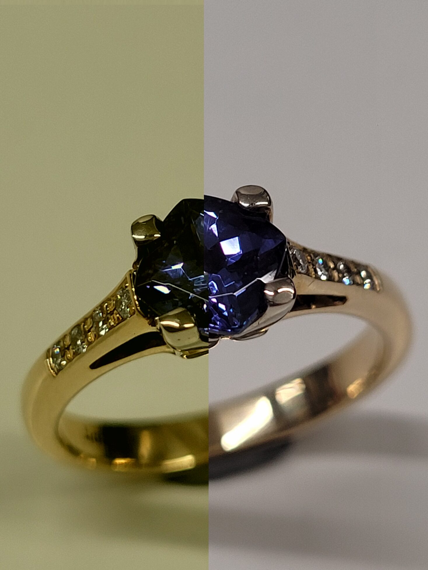 Elegant design guldring med Tanzanite og Brillanter. Den flotte
