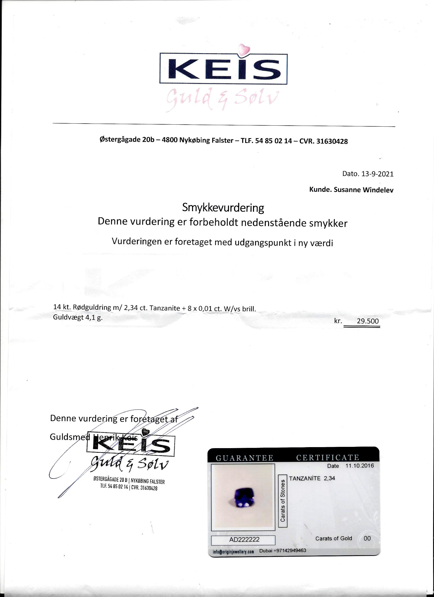 er i 14 kt. rødguld prydet med 2.34 ct. Tanzanite + 8 x 0.01 ct. Top