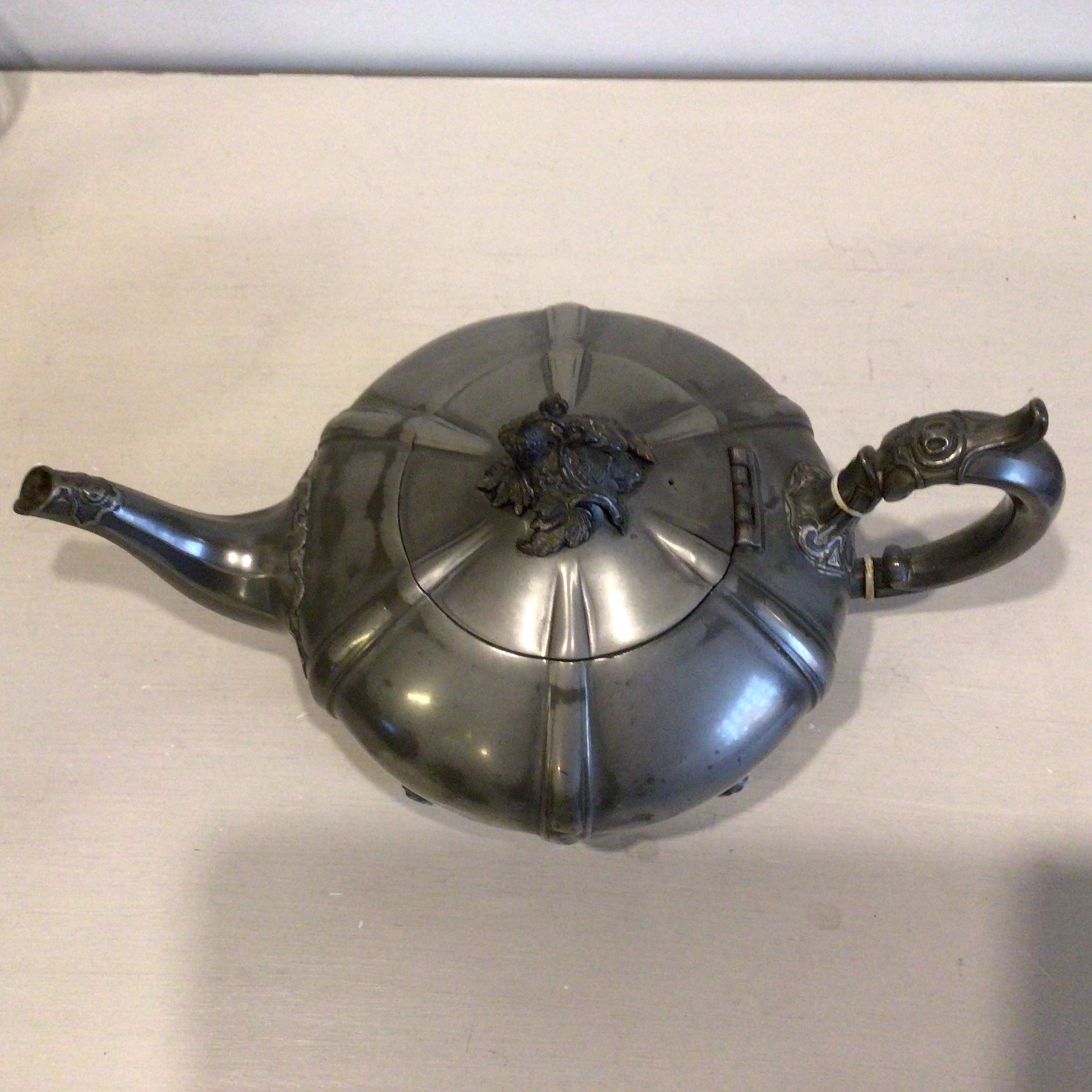 Engelsk tekande i tin. Engelsk tekande i tin er rund, buttet