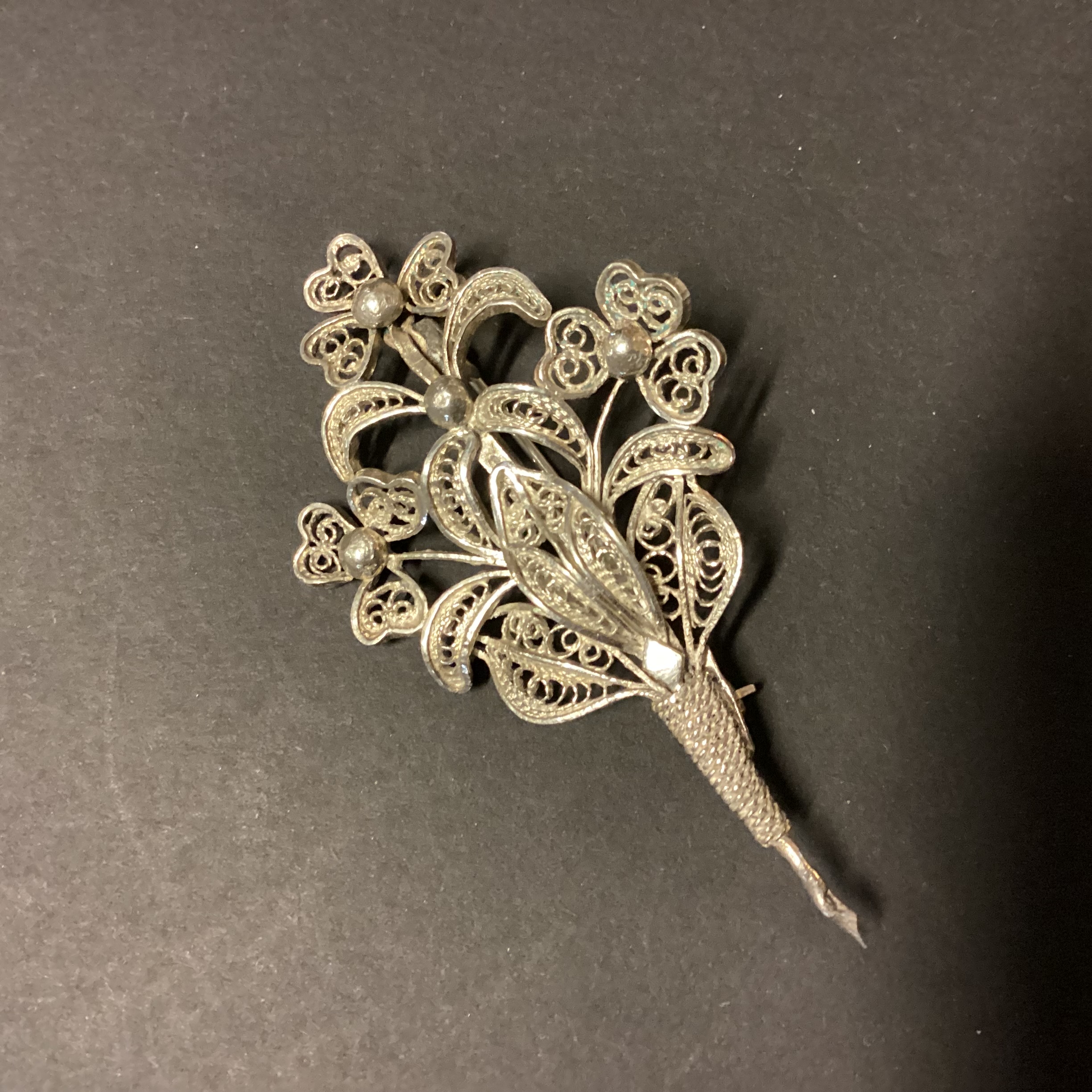 Filigran Broche i form af blomsterbuket. Den smukke filigran