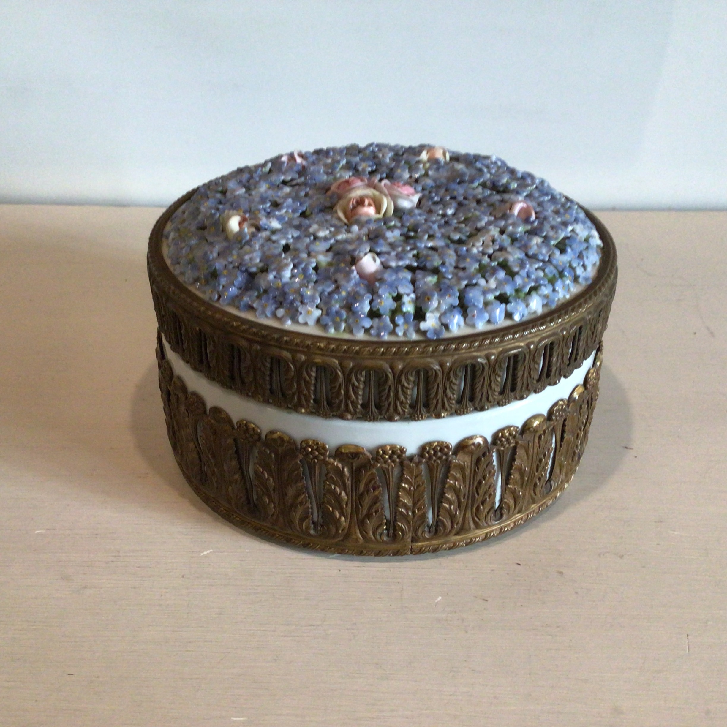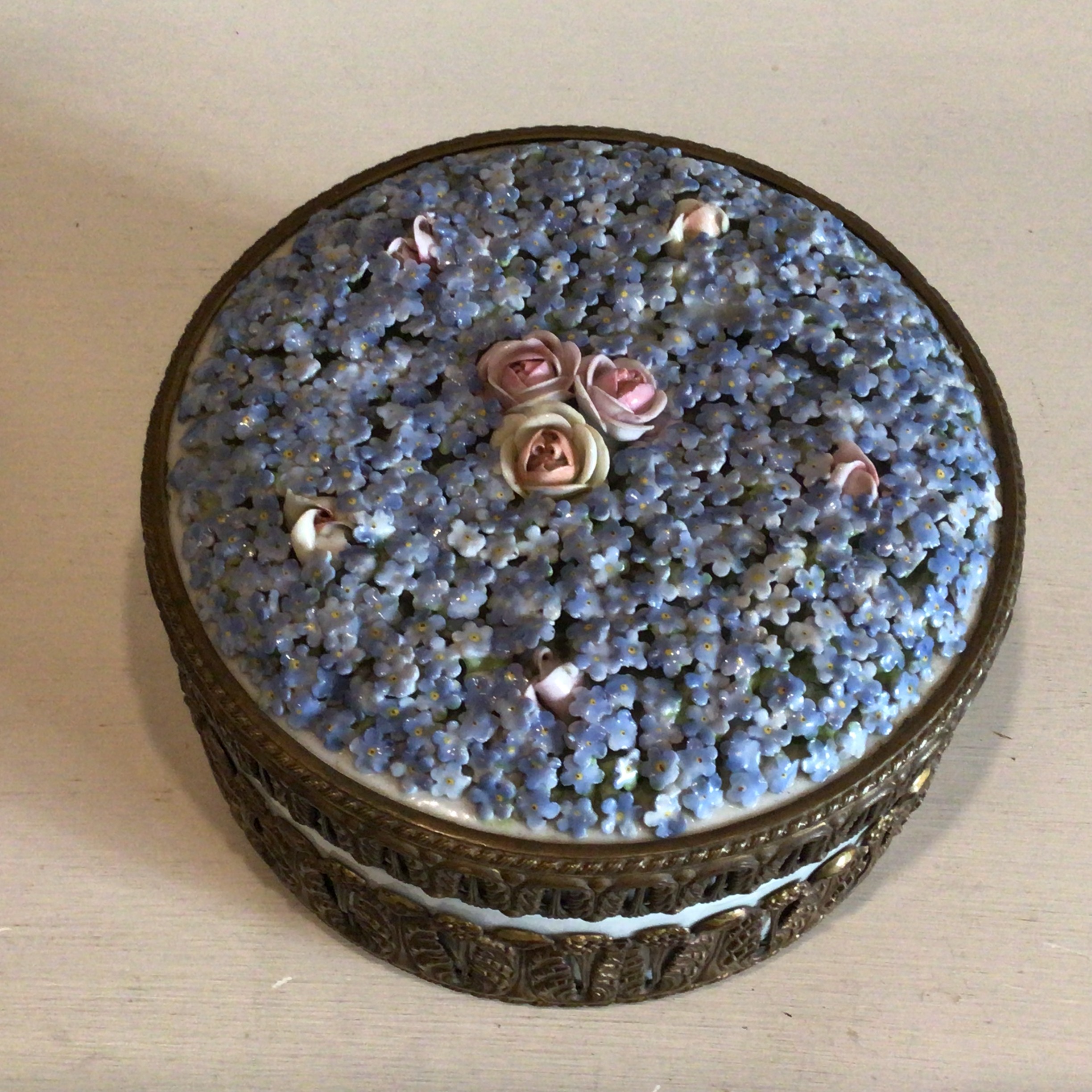 Fantastisk flot Fransk Bonbonniere med blomster og bronce. Fransk