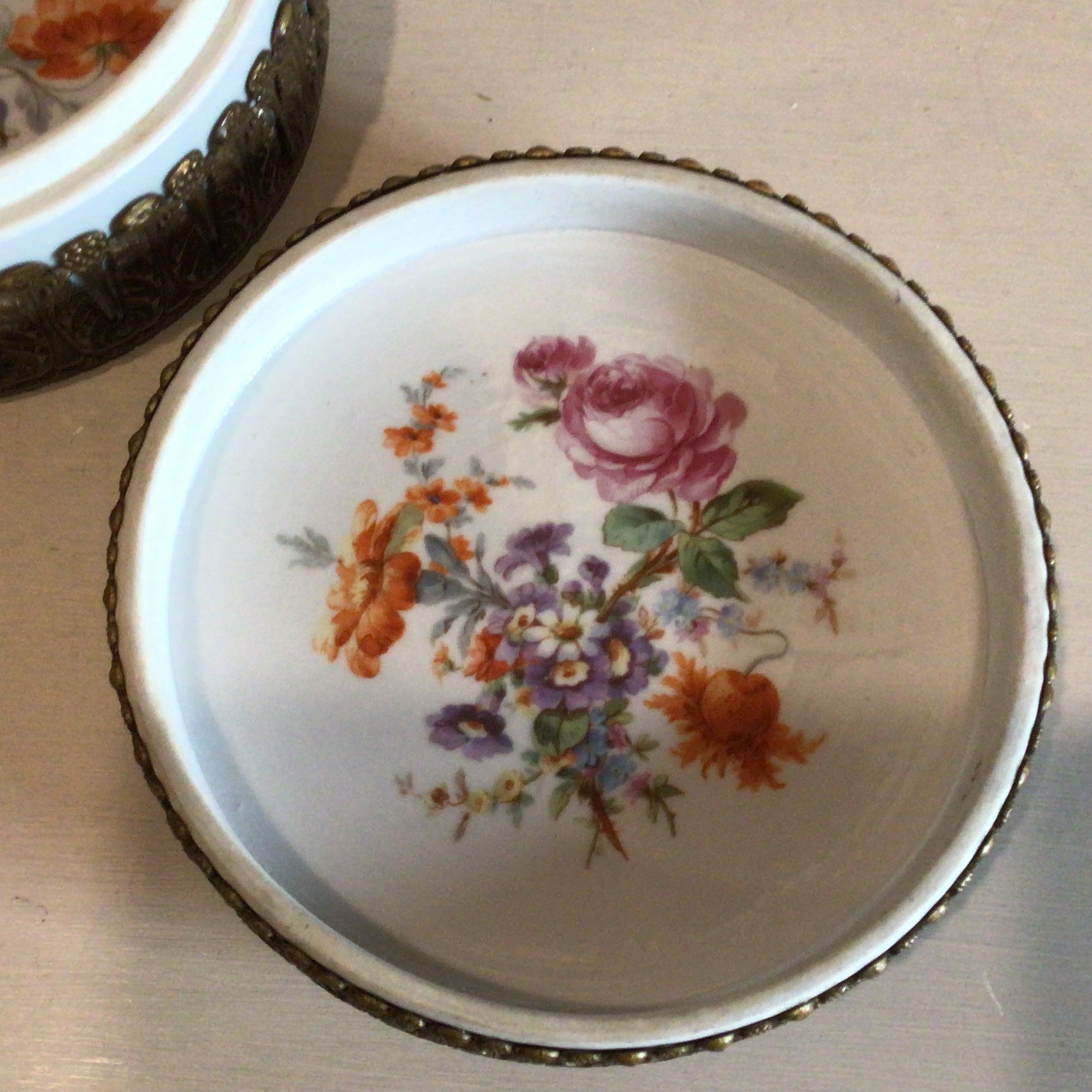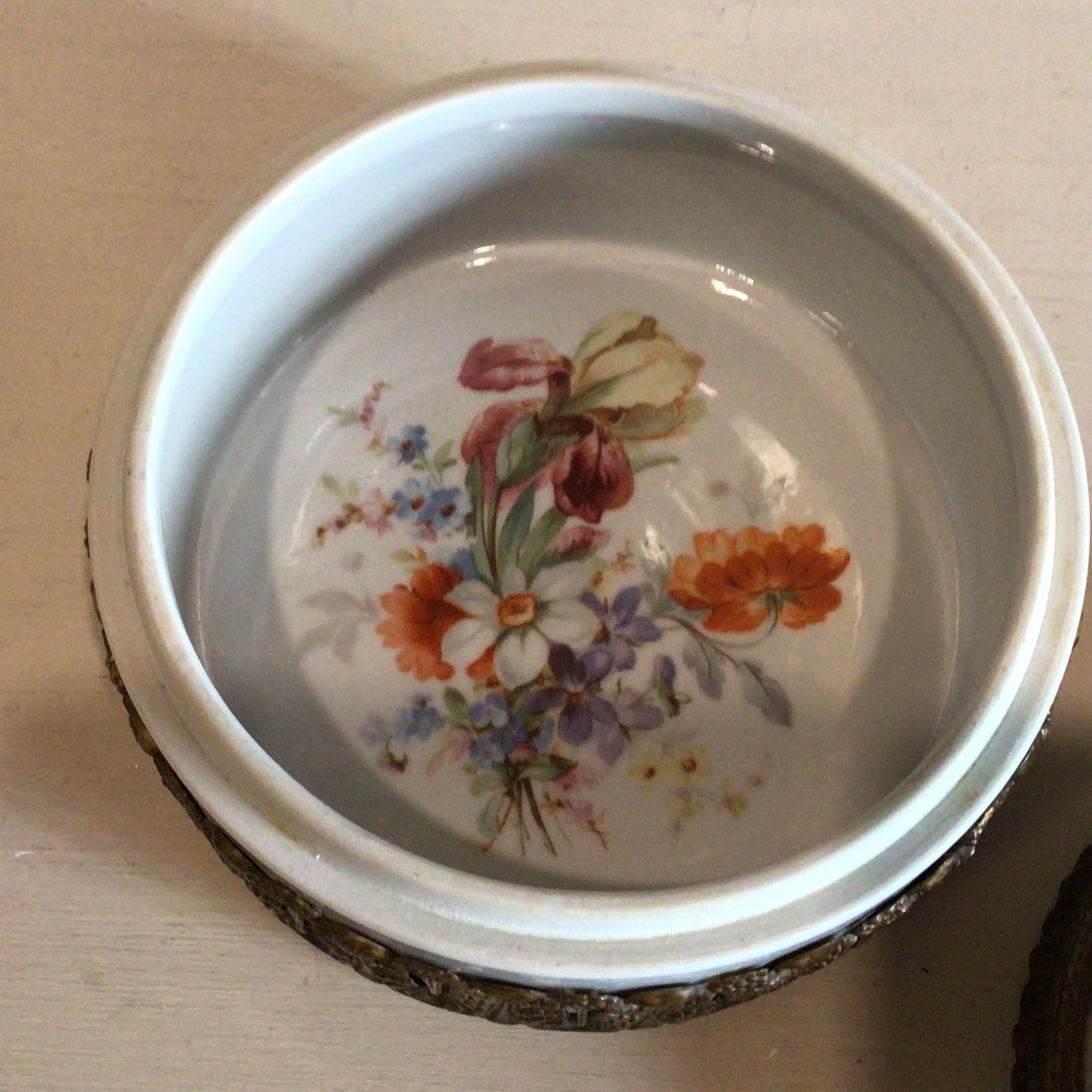 bund med håndmalet blomsterbuketter. Bonbonnieren er i fin stand.