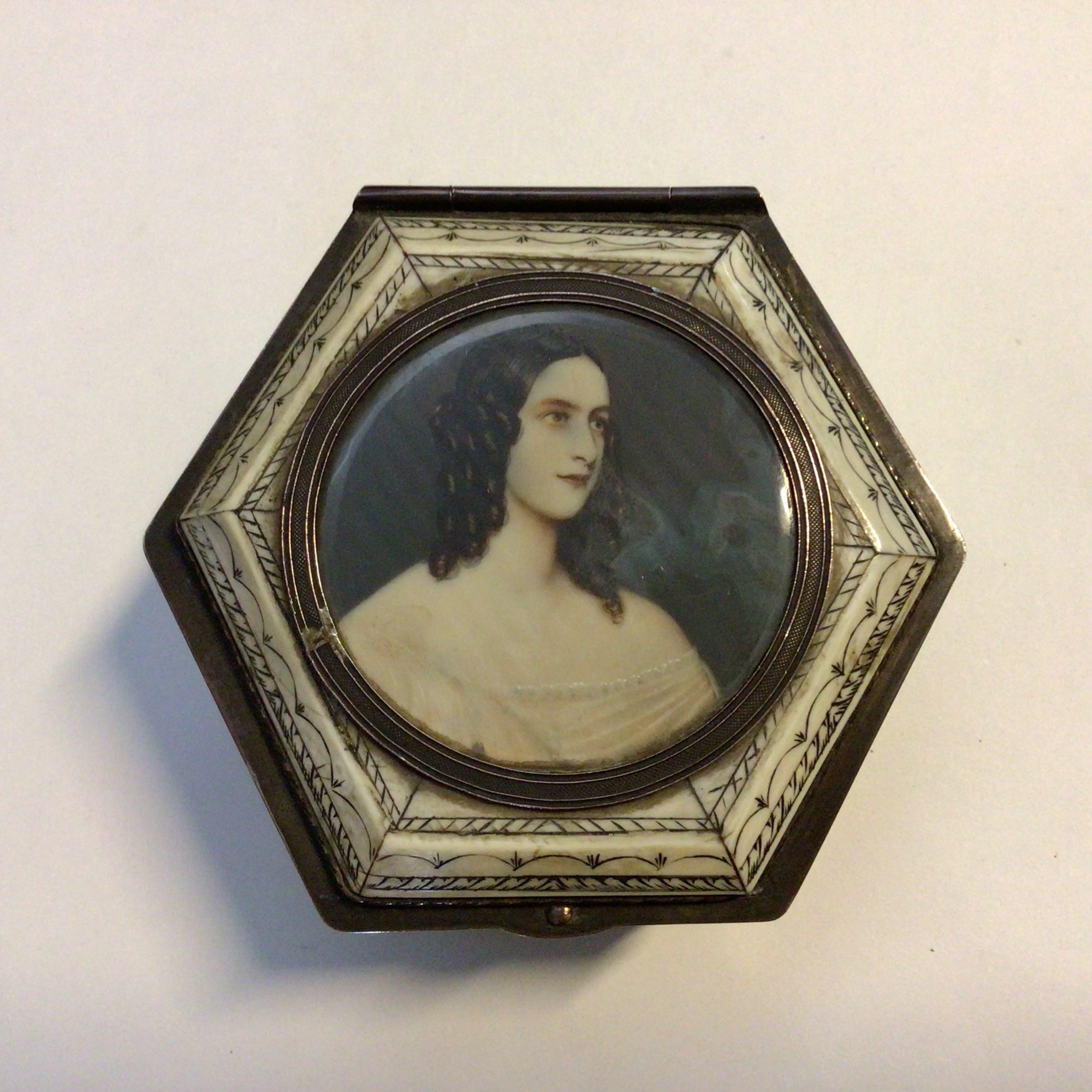 Fransk dåse med portræt. Fransk dåse med portræt maleri på låg – ej signeret.