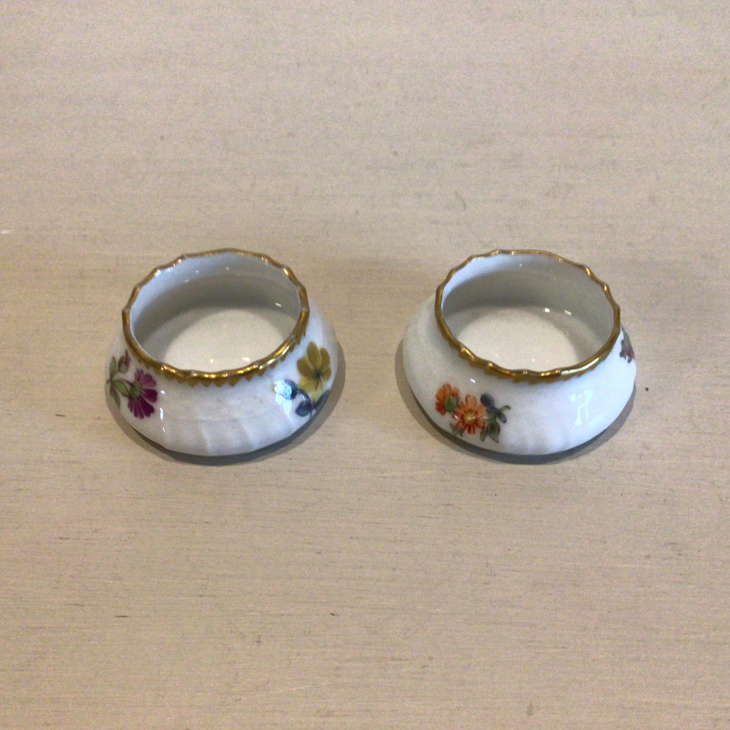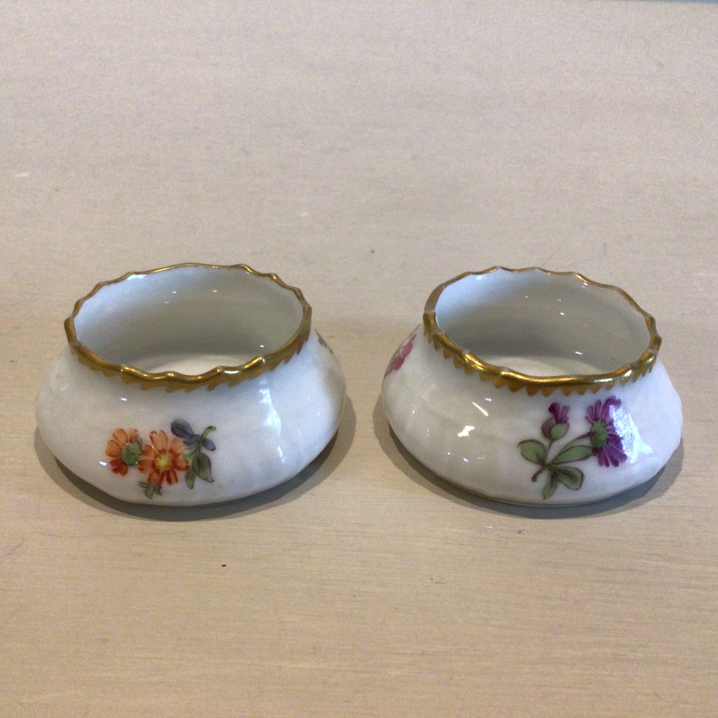 Fuld Saksisk Blomst Saltkar er rundt og med takket guldkant. Saltkarret