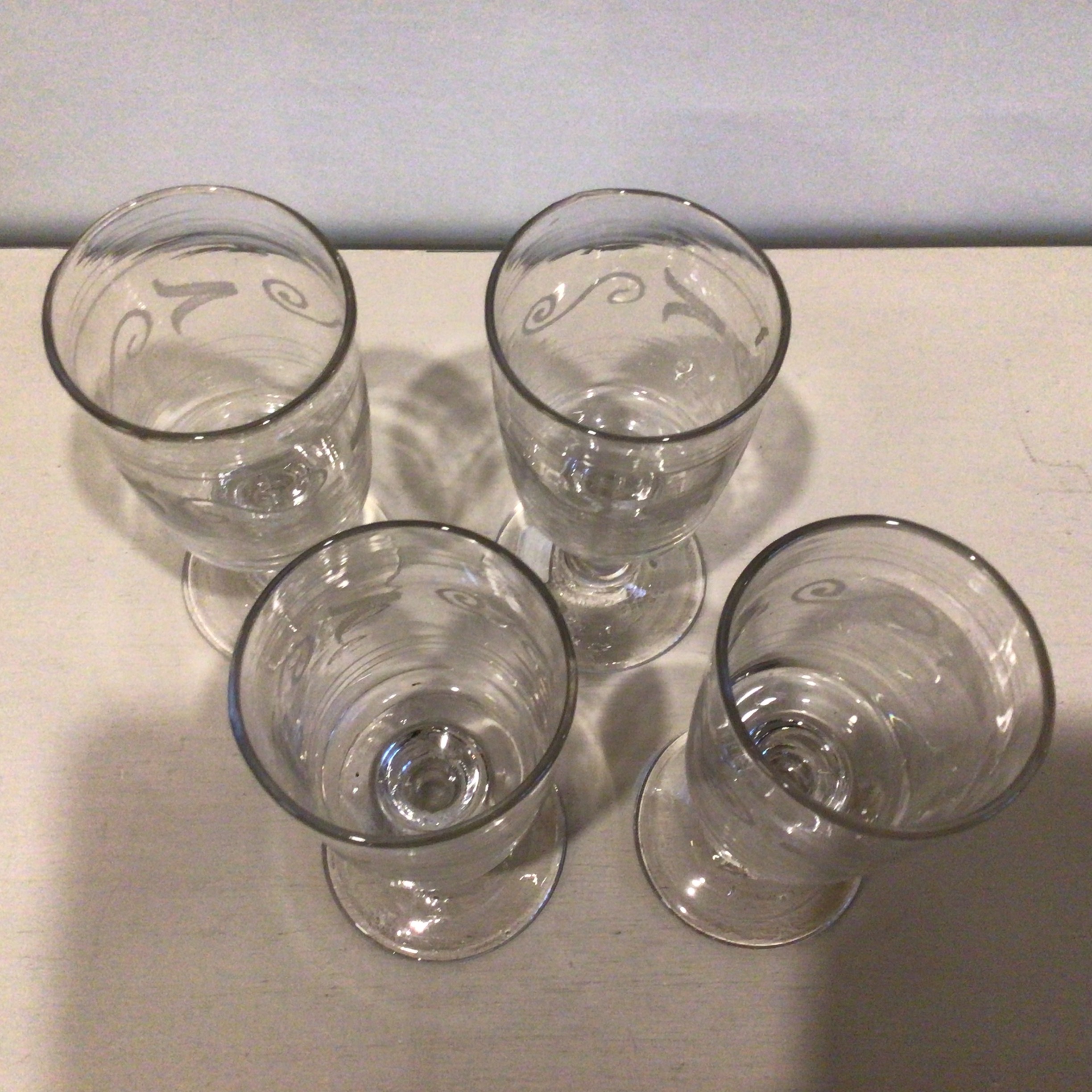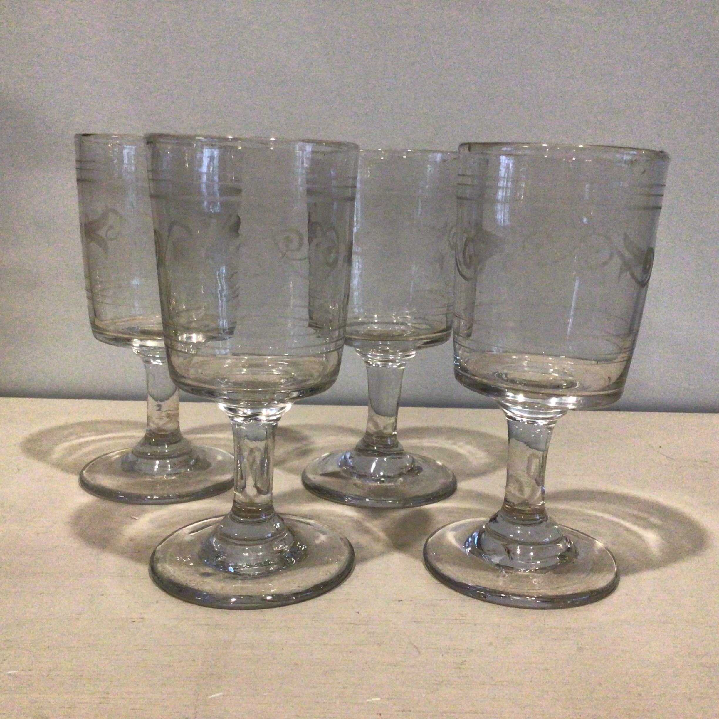 Fire gamle Franske mundblæste vin glas med smuk matætset