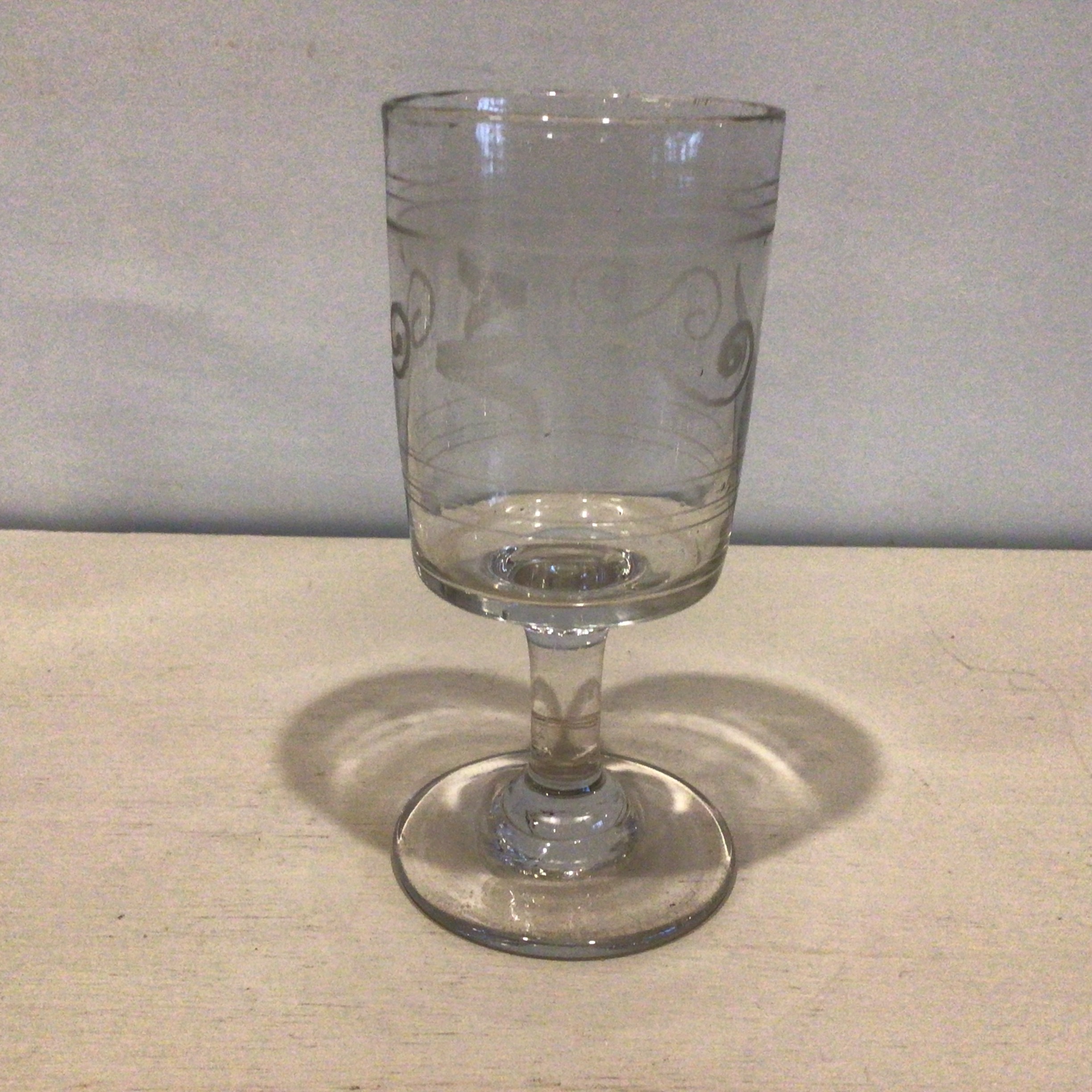 vin glas med dekoration.