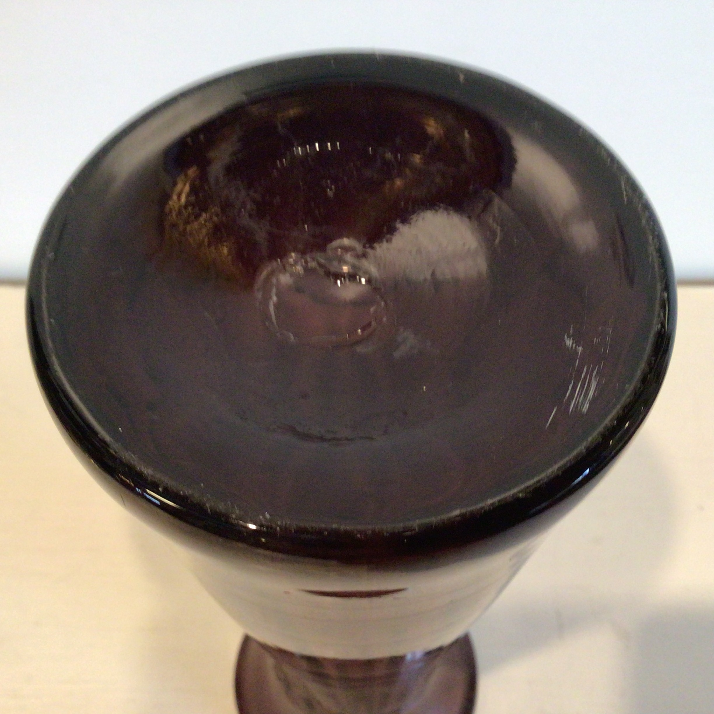 Skønt gammelt aubergine farvet hyacintglas. Det gammelt