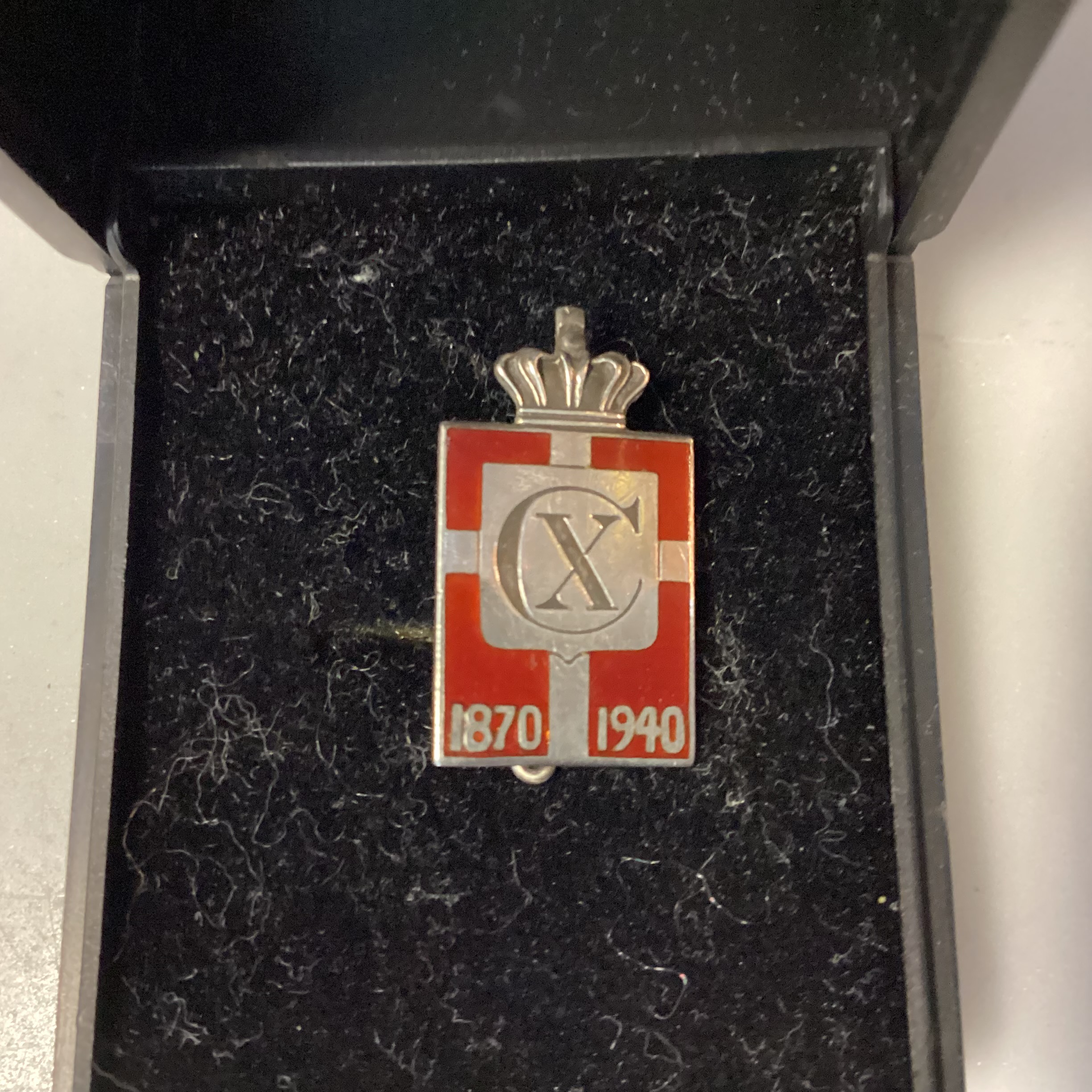 til Kong Christian X 70 års fødselsdag. Konge-Emblemet er udført i