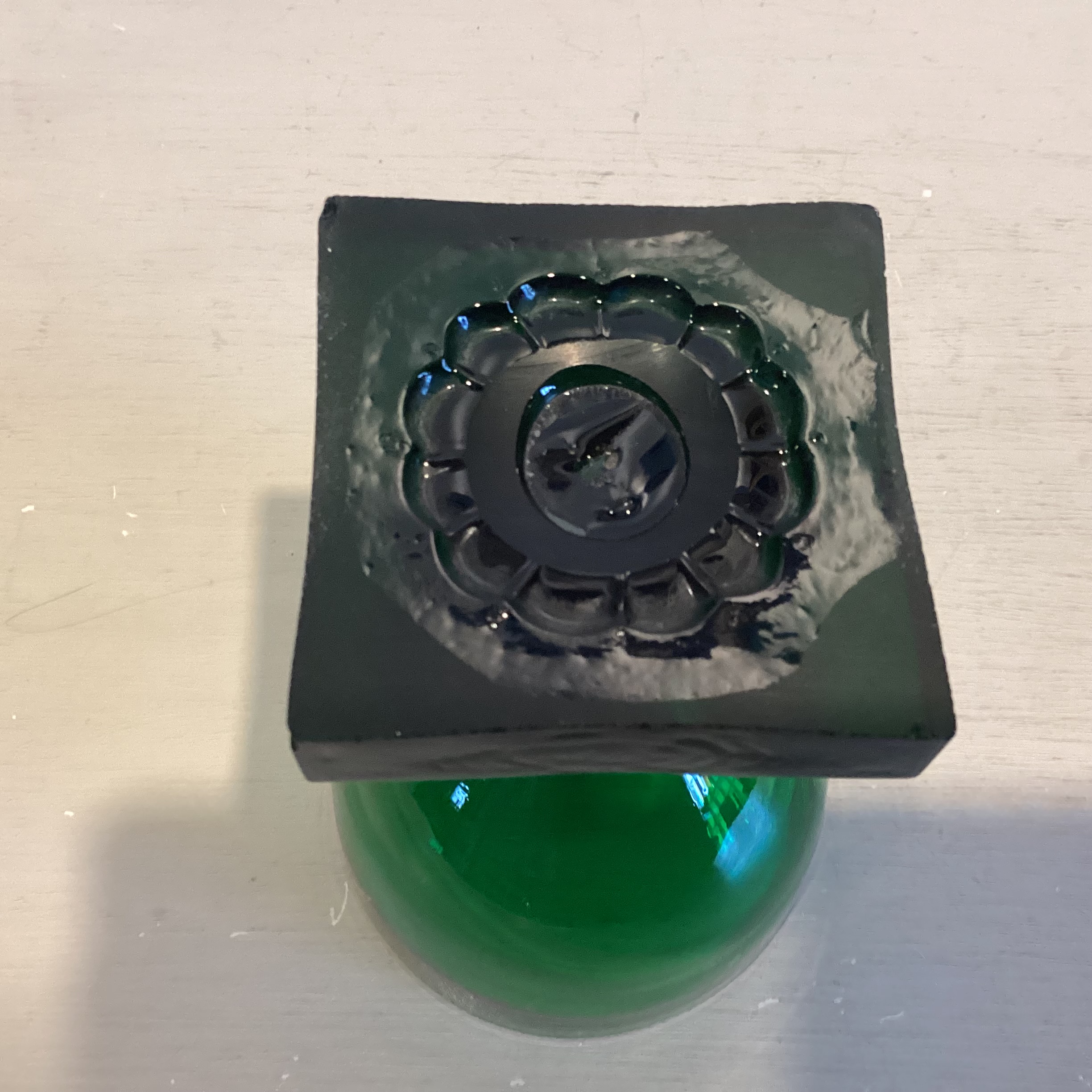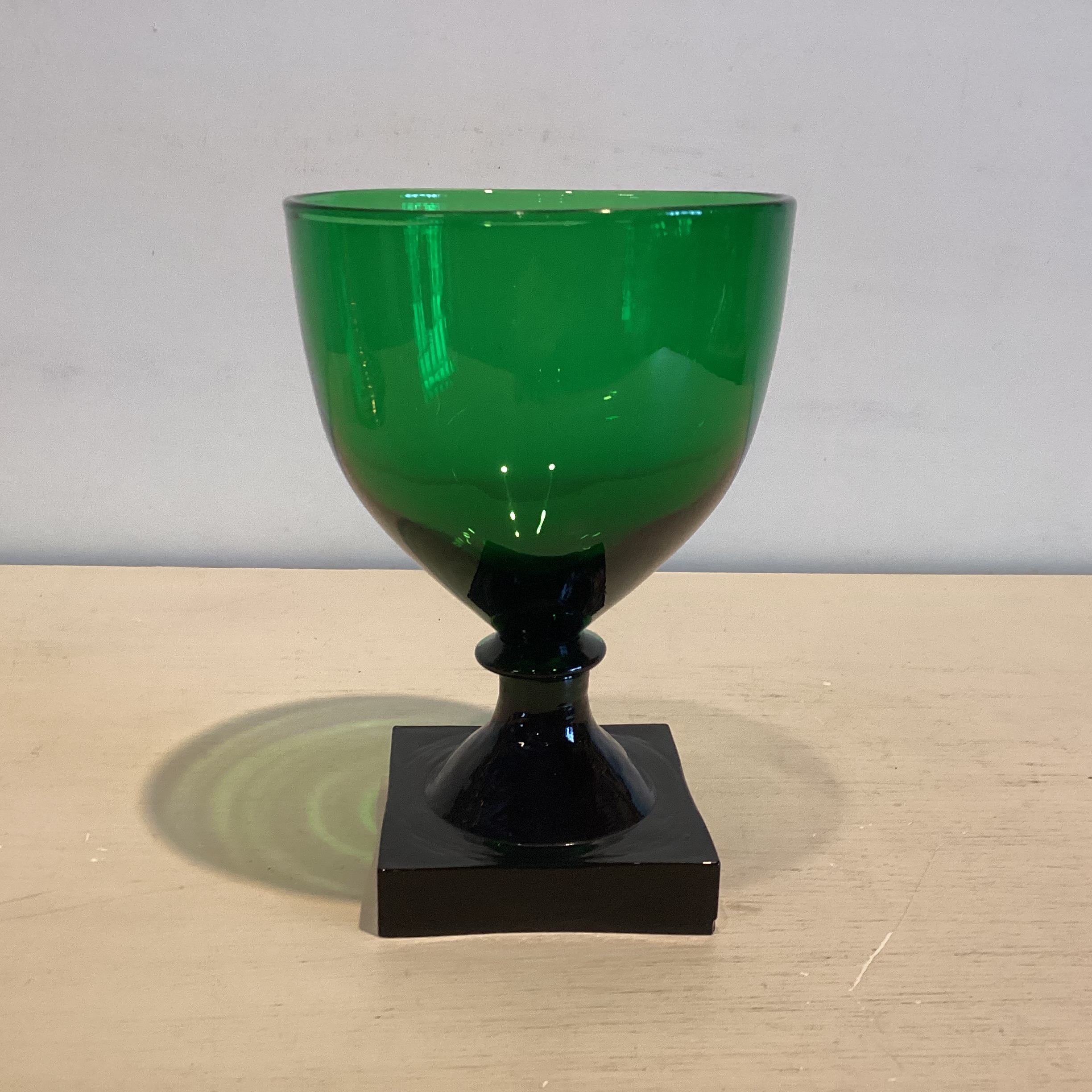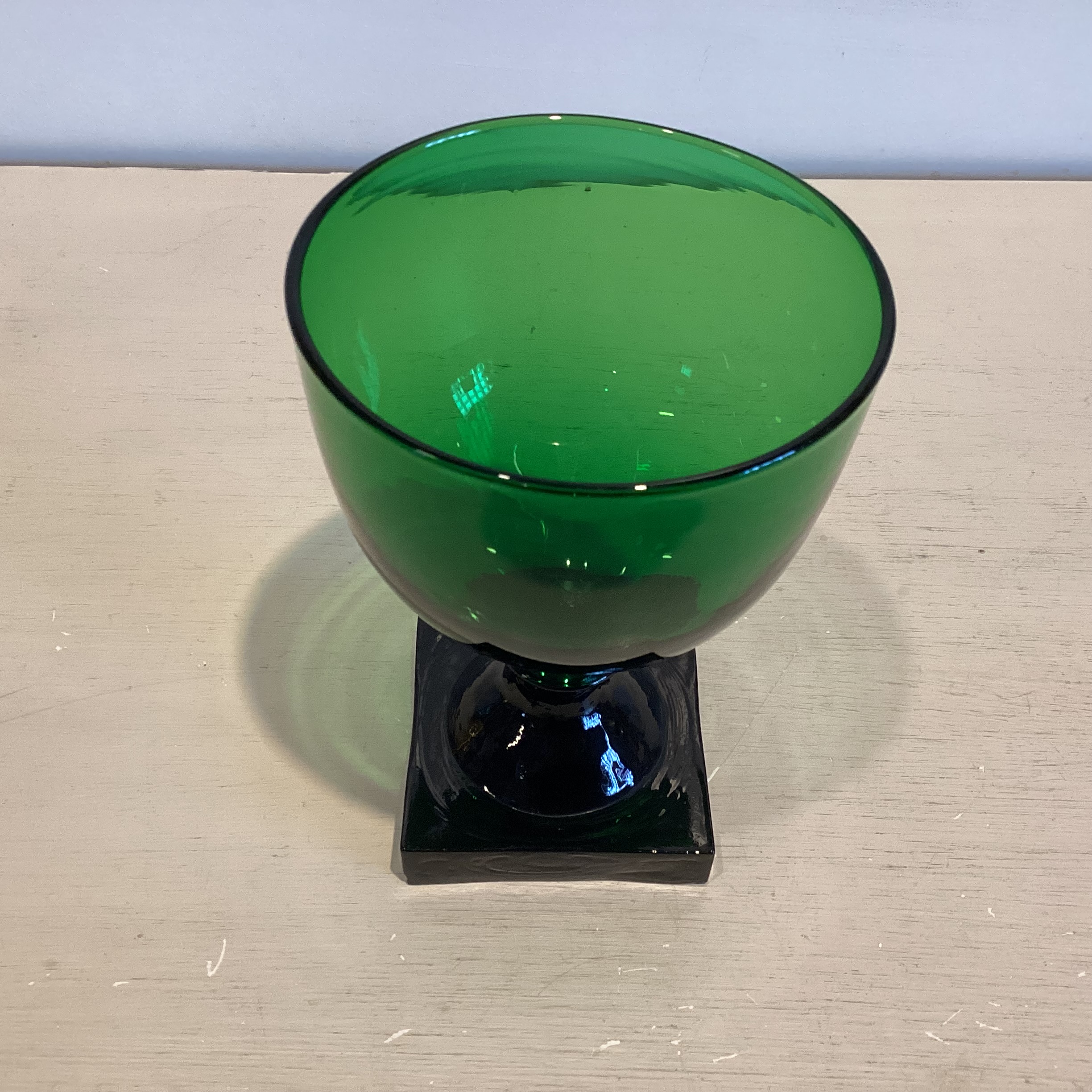 kraftig firkantet fod med slebet sider og mundblæst anhæftet skålformet kumme