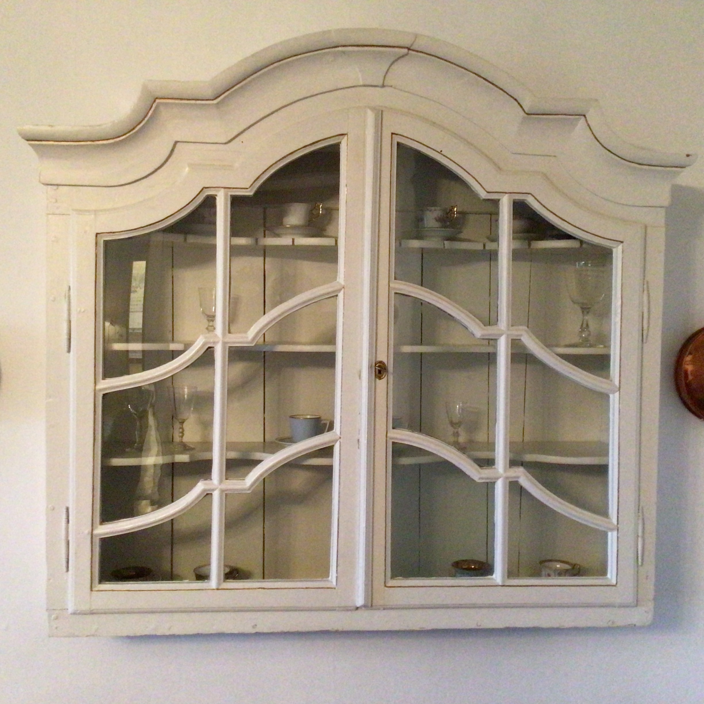 Gråmalet Rokoko Vægvitrine. Smukt gråmalet rokoko