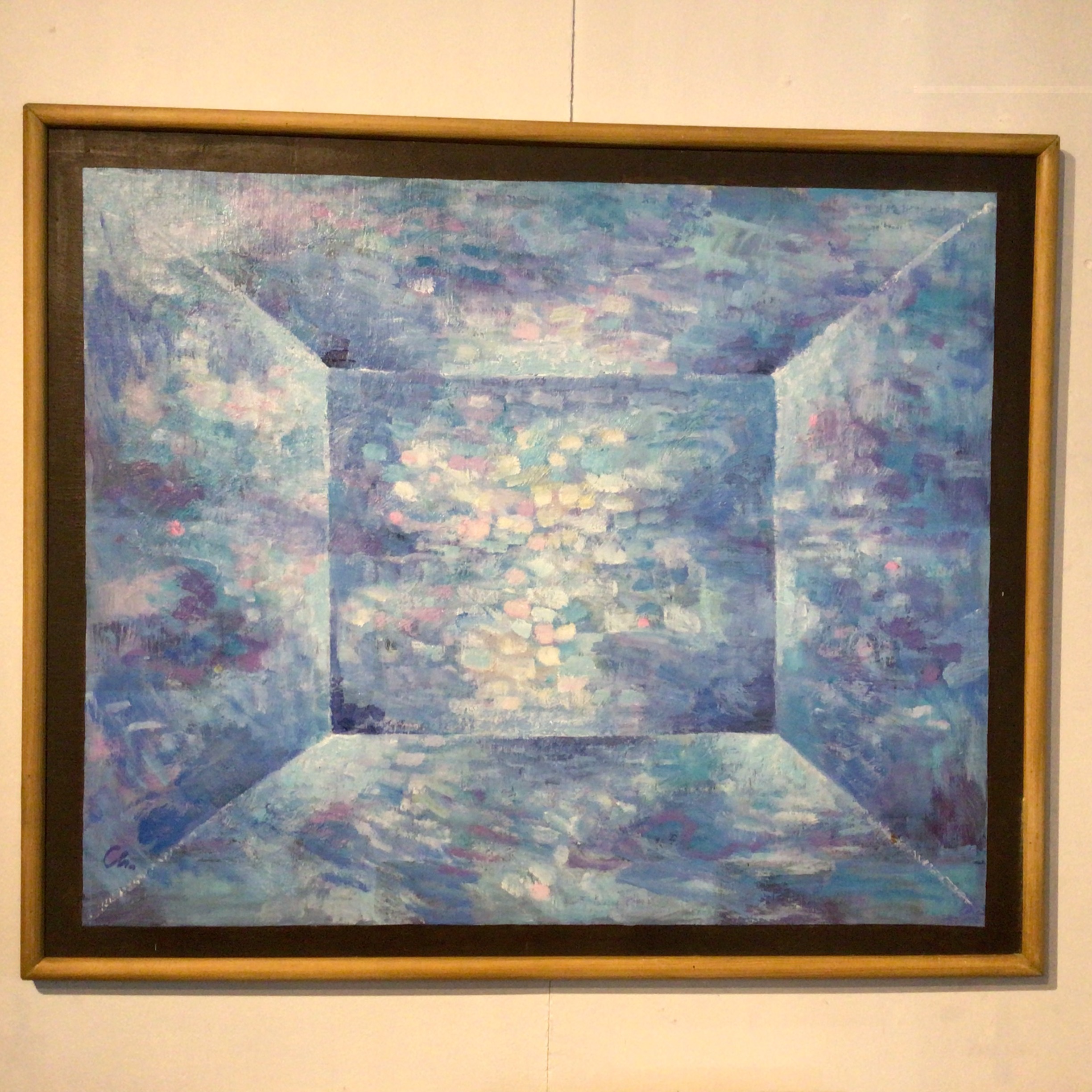 på lærred, signeret monogram og har en firkant i centrum