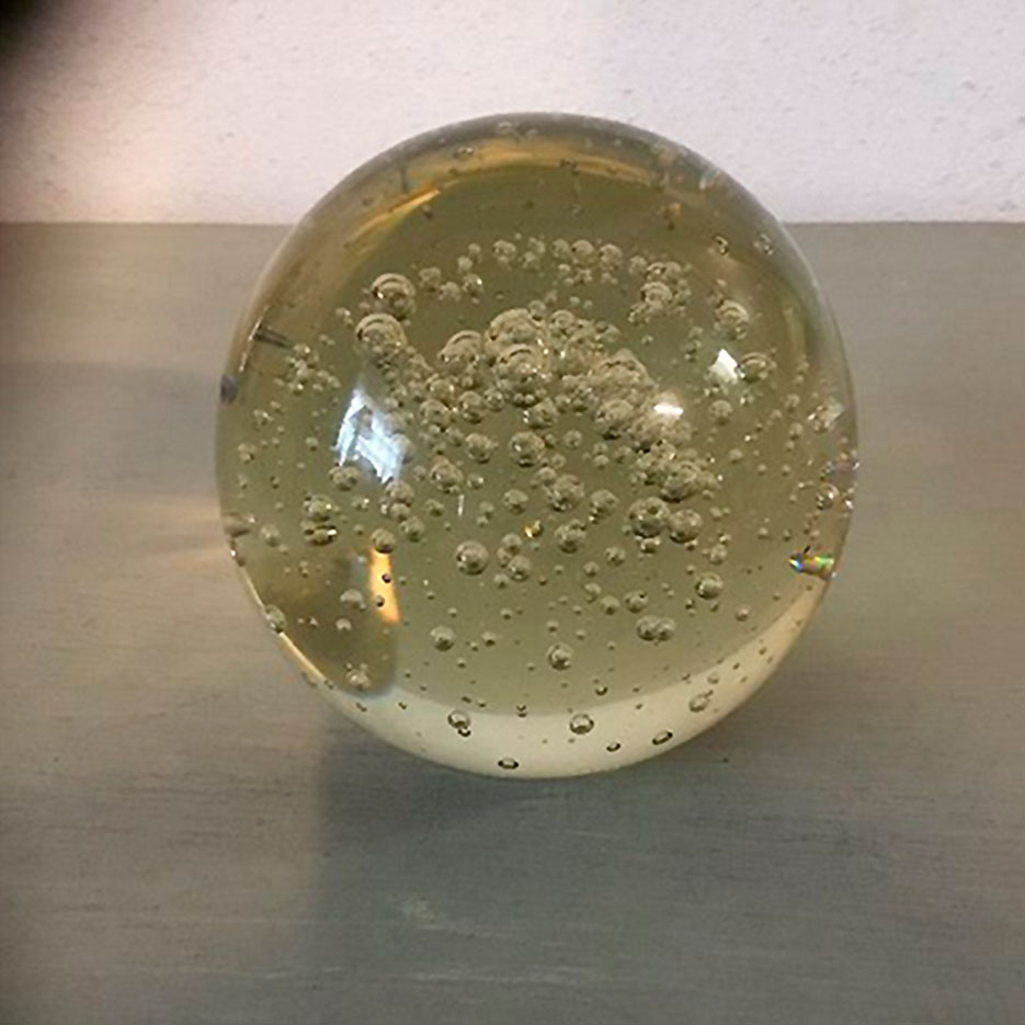 Holmegaard brevpresser af klart glas fyldt med bobler.