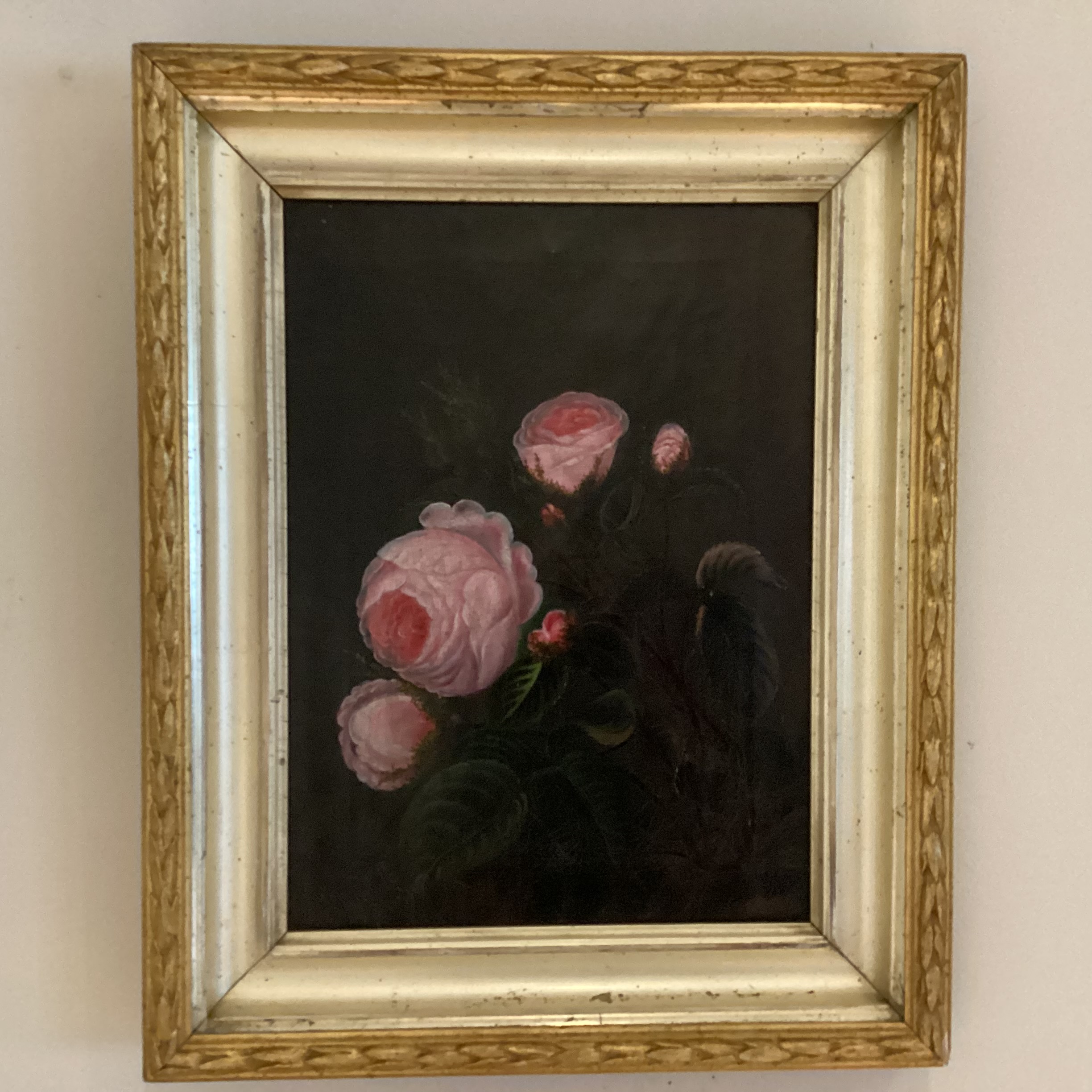 signeret og malt med olie på lærred. Original sølvramme med guldkant.