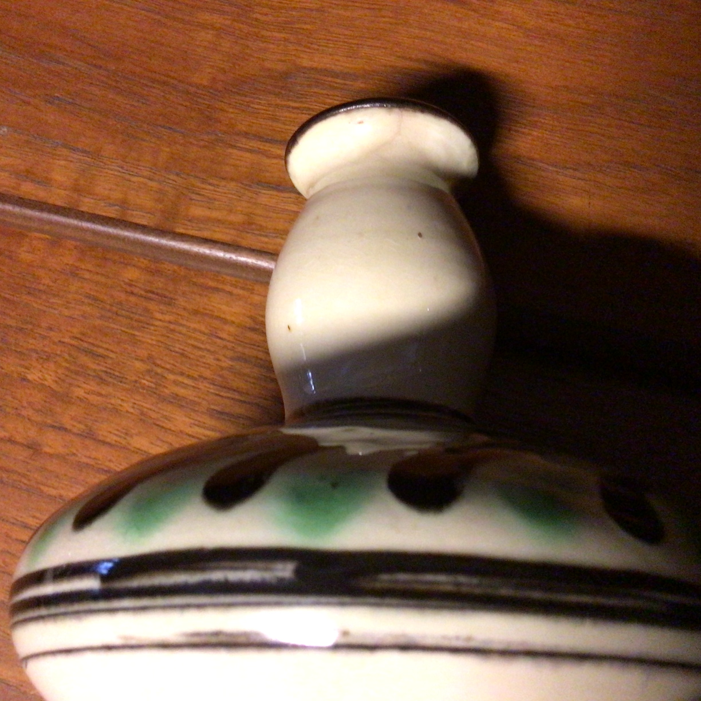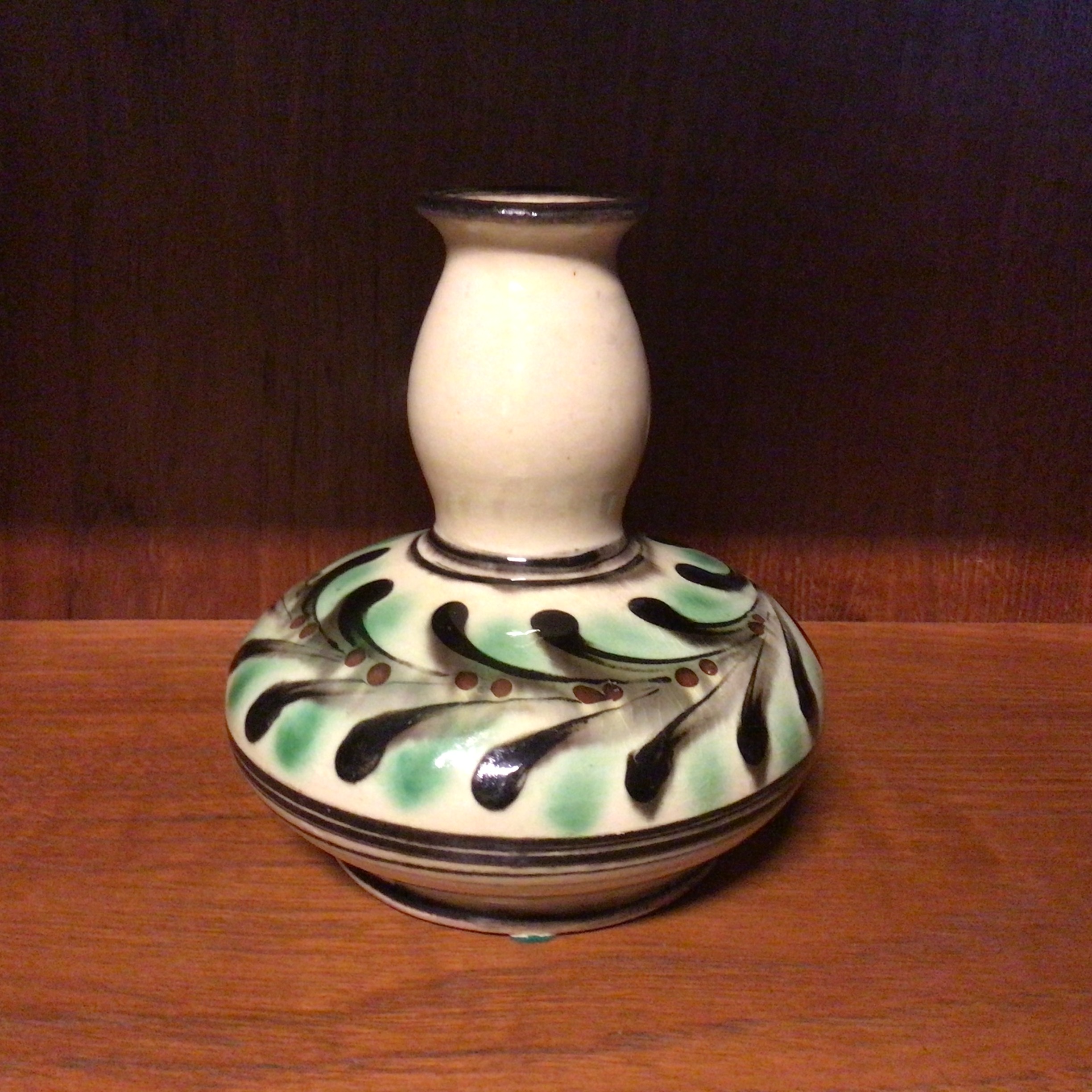 Kähler Vase i gul bundfarve med dekoration af grønne og