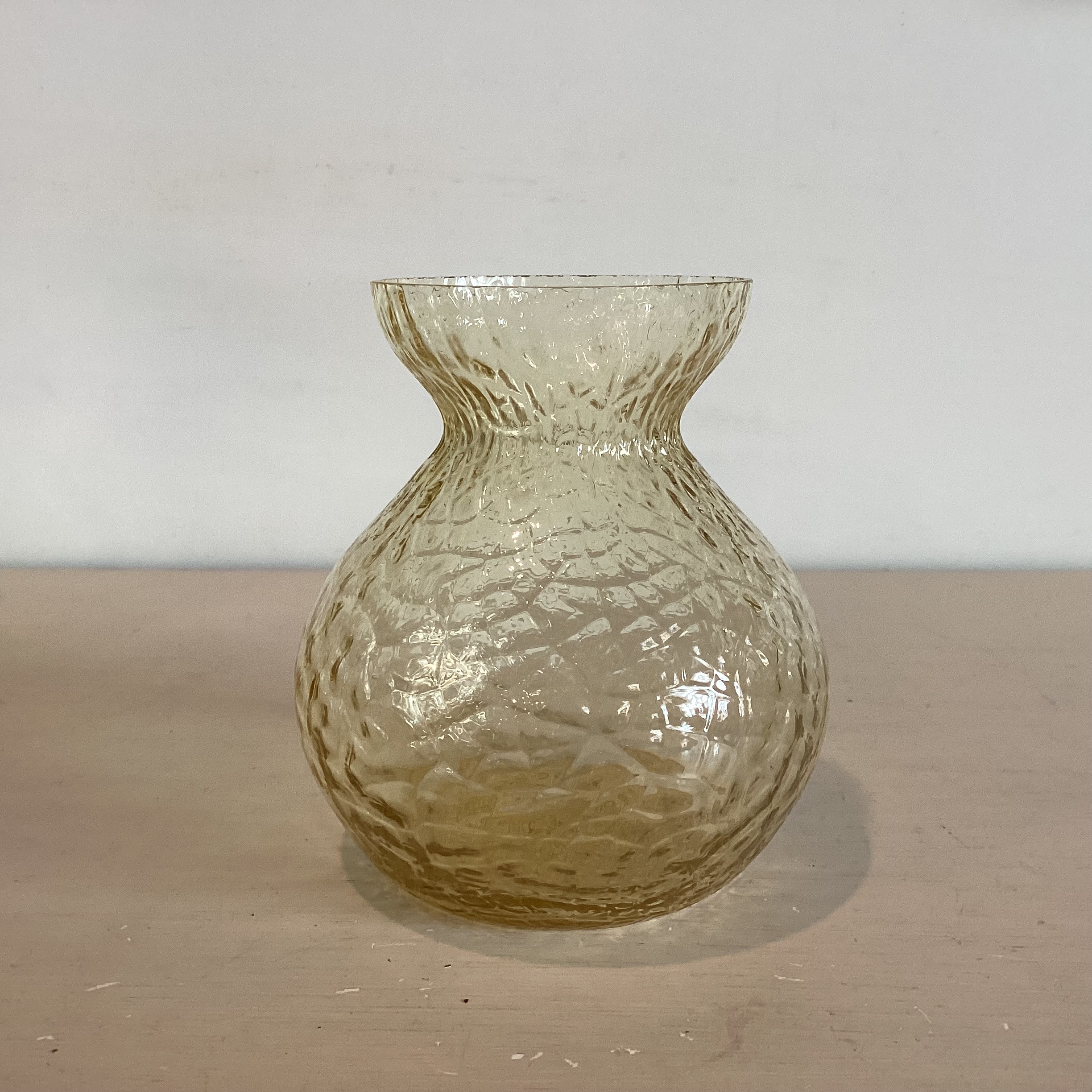 dråbeformet hyacintglas ruflet optik. Farven er let honning.