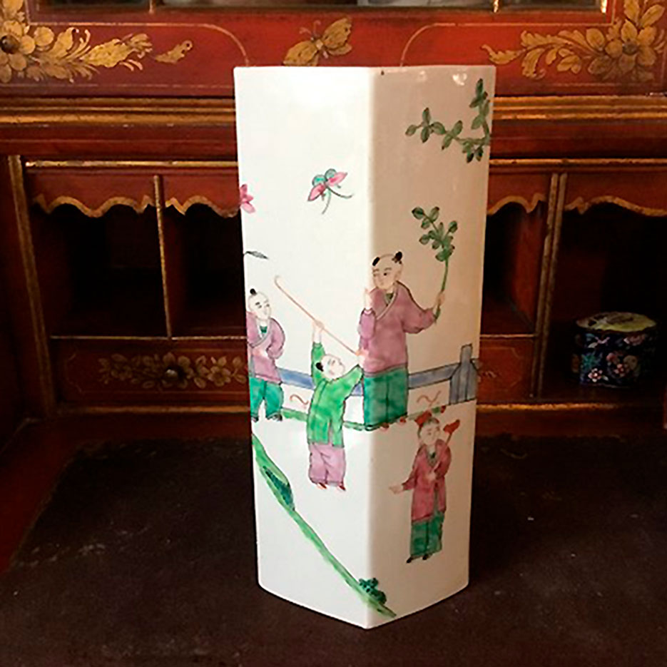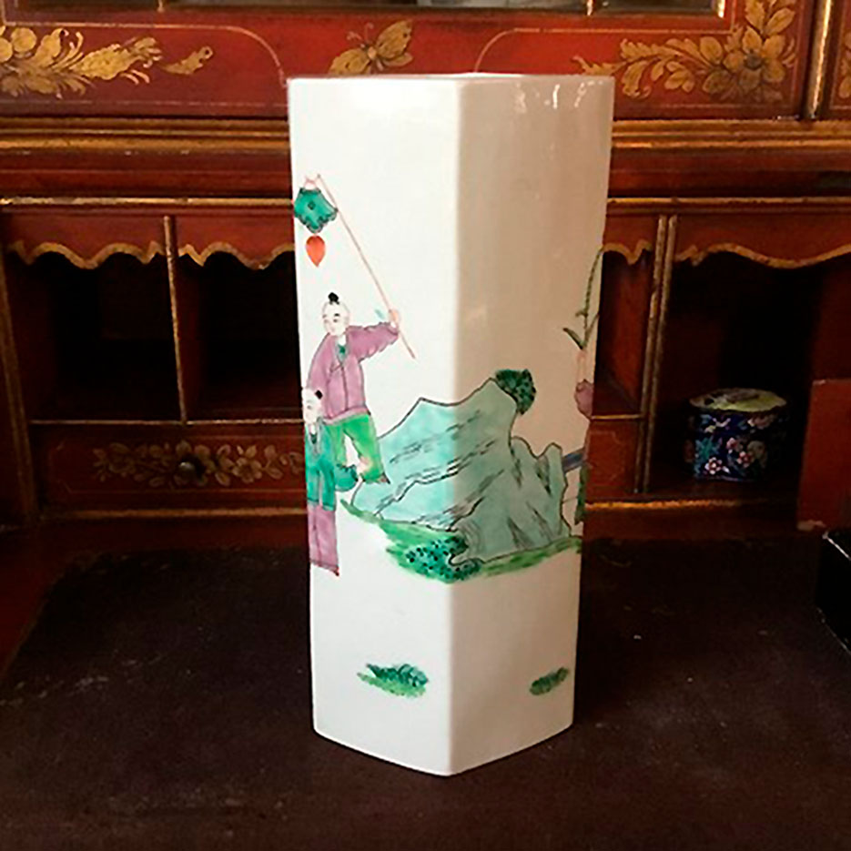 Kinesisk sekskantet vase i porcelæn. Den fine kinesiske vase er dekoreret med