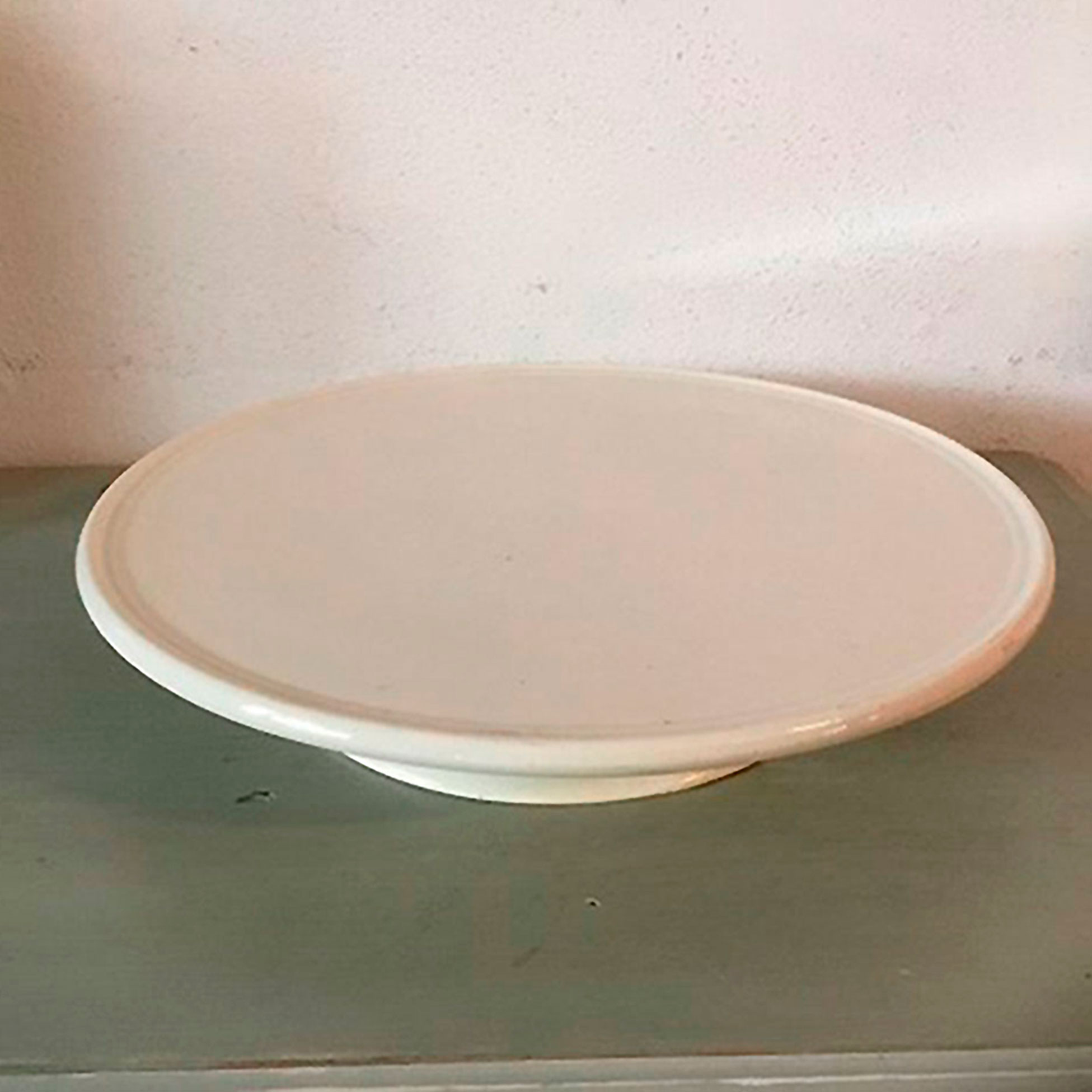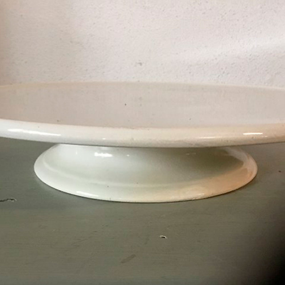 Rundt kransekage- konditorfad i cremefarvet fajance på opsats.