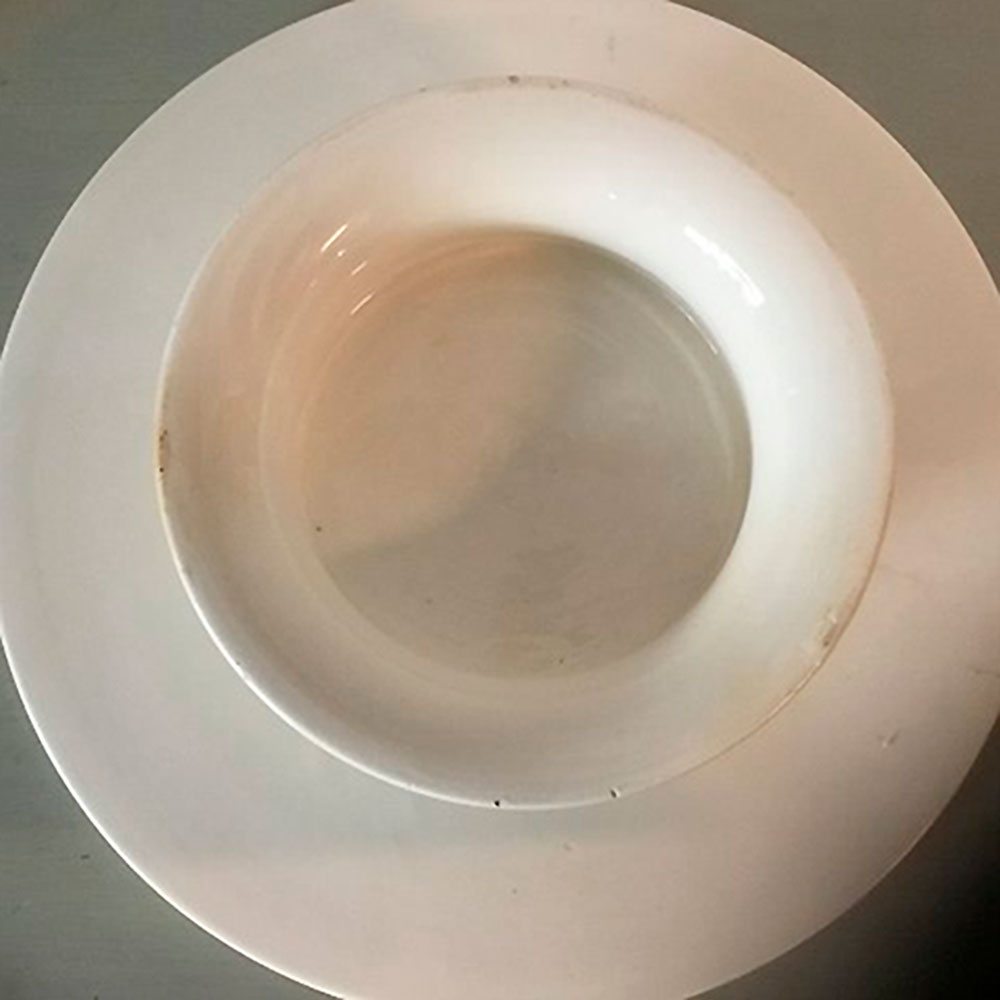 Det charmerende konditorfad har en lille gammel reparation på foden (se foto).
