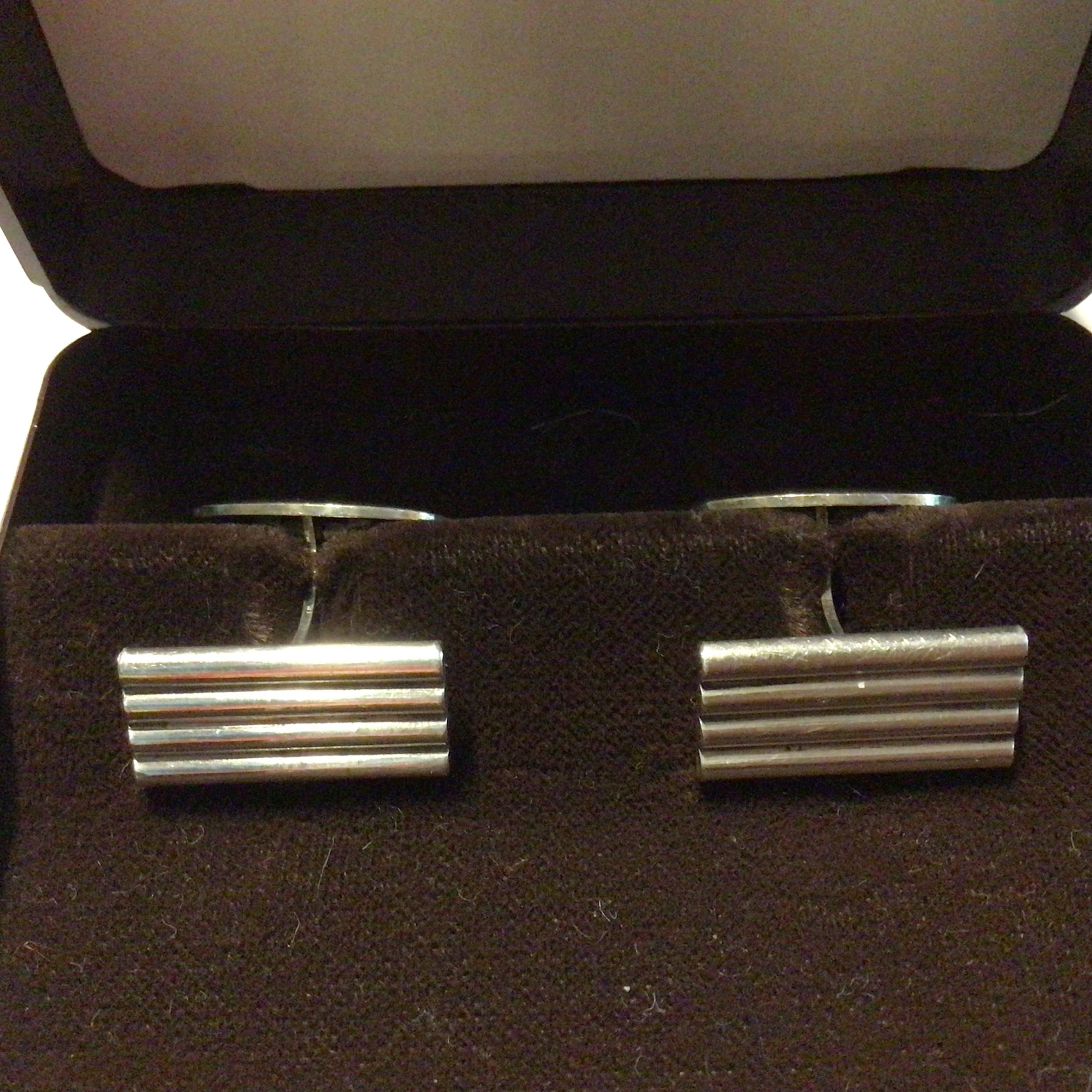 Klassiske manchetknapper i sølv. Manchetknapperne er firkantet