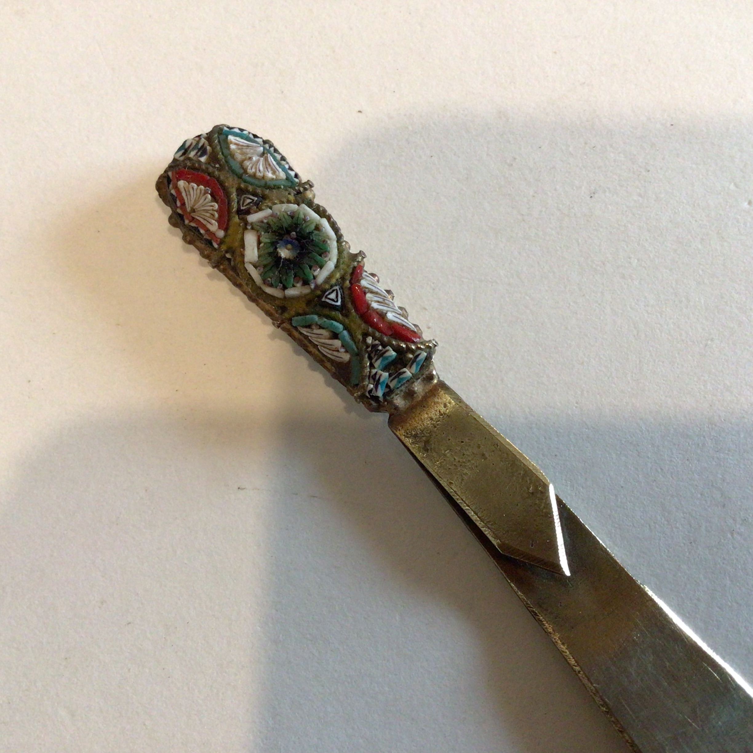 i smukt Milleflori mosaik på messing. Pæn brugt stand.