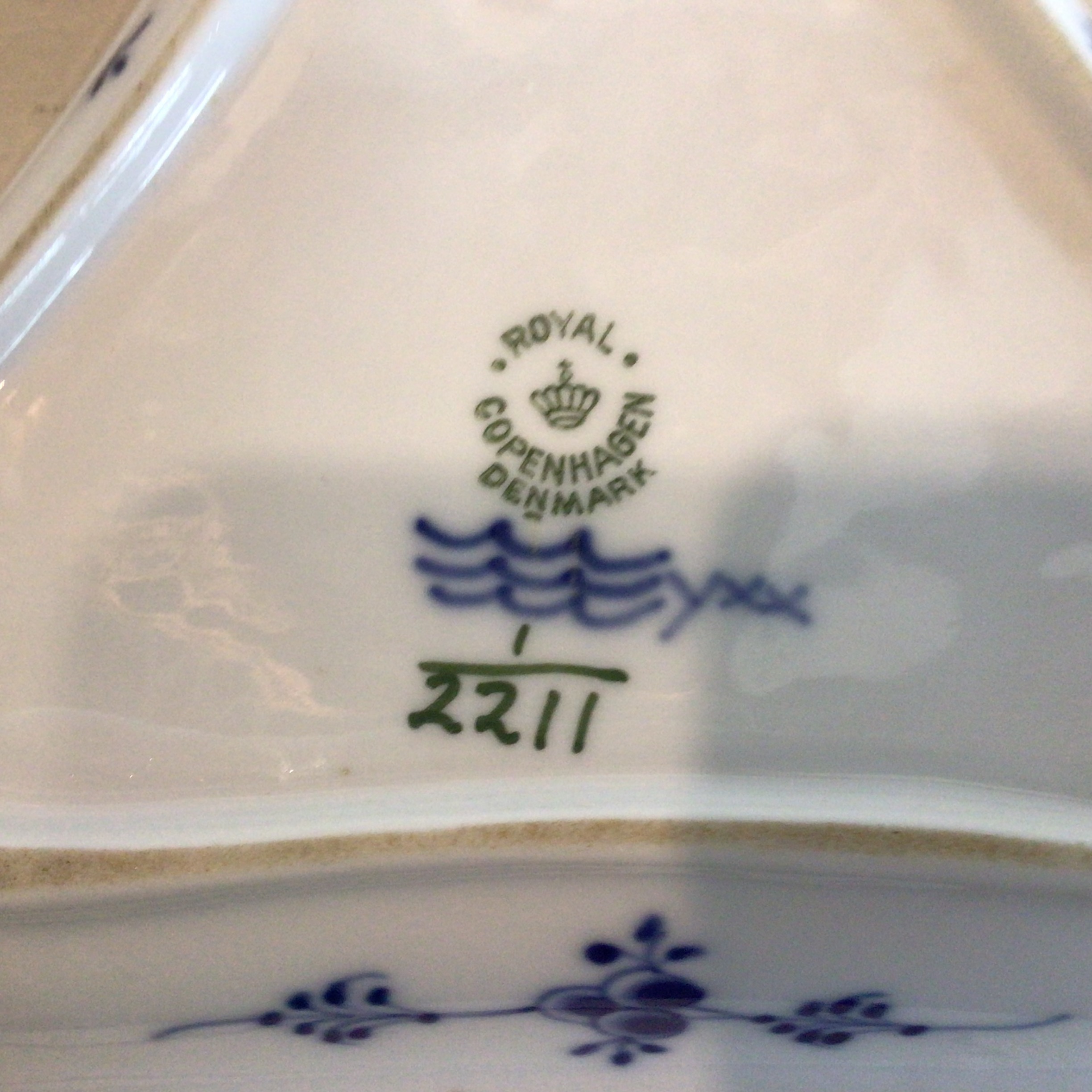 Royal Copenhagen Musselmalet 3-kantet asiet #2211. Sjældent