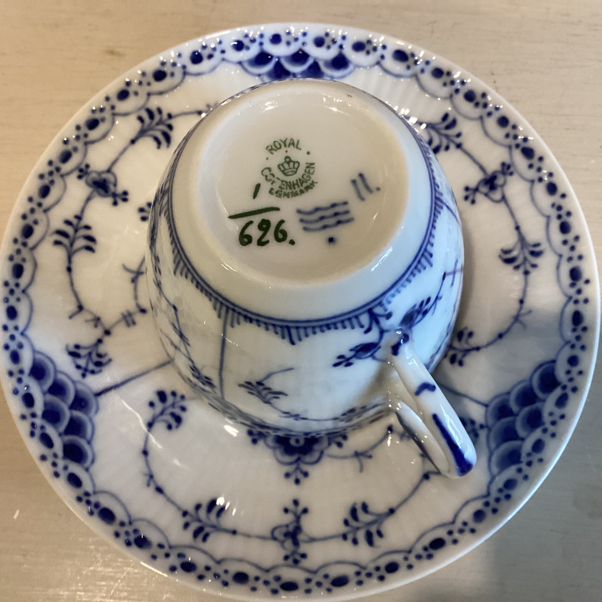 Royal Copenhagen. Musselmalet halvblonde stor kop #626. Musselmalet