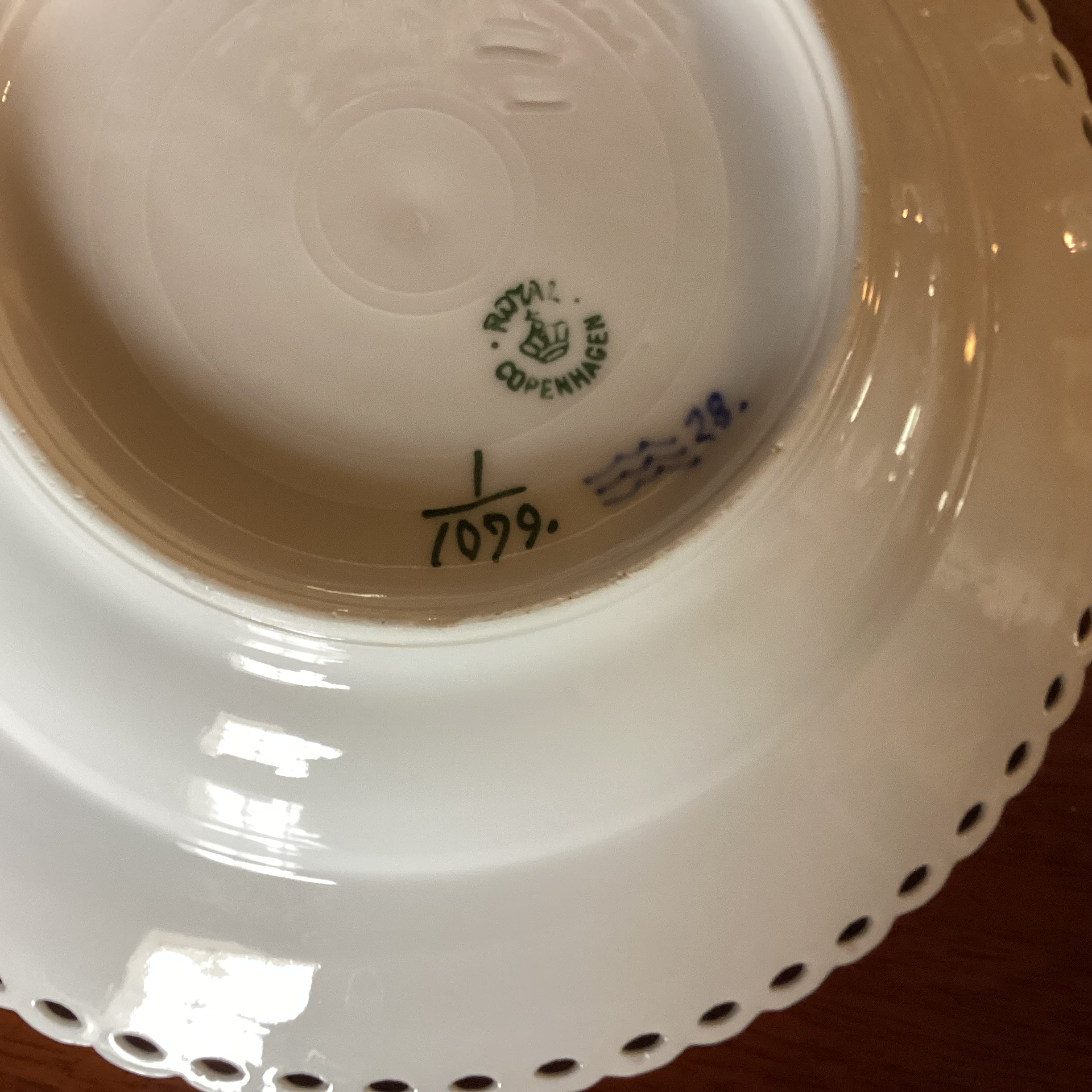 Kongeligt porcelæn. 1. sortering. Produceret mellem år 1994 – 1923.
