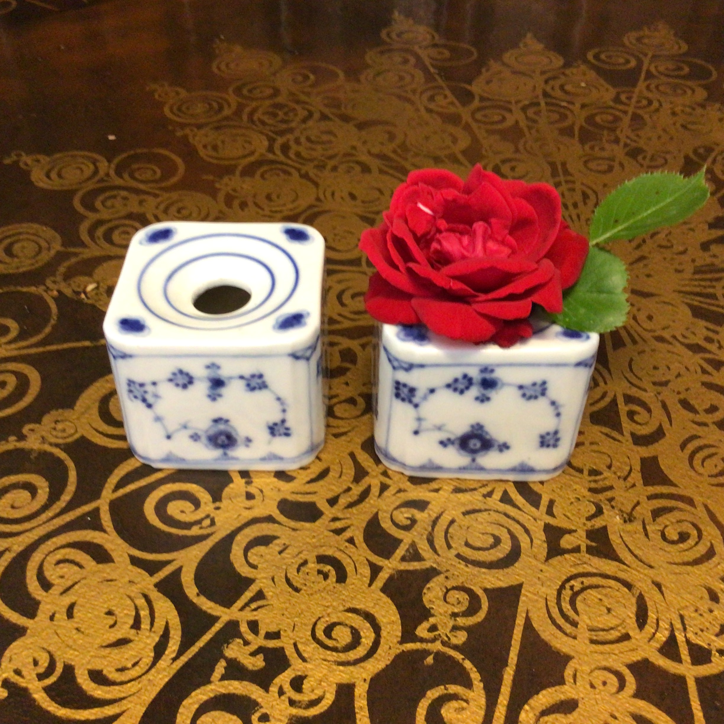 andet lysestage og vase.