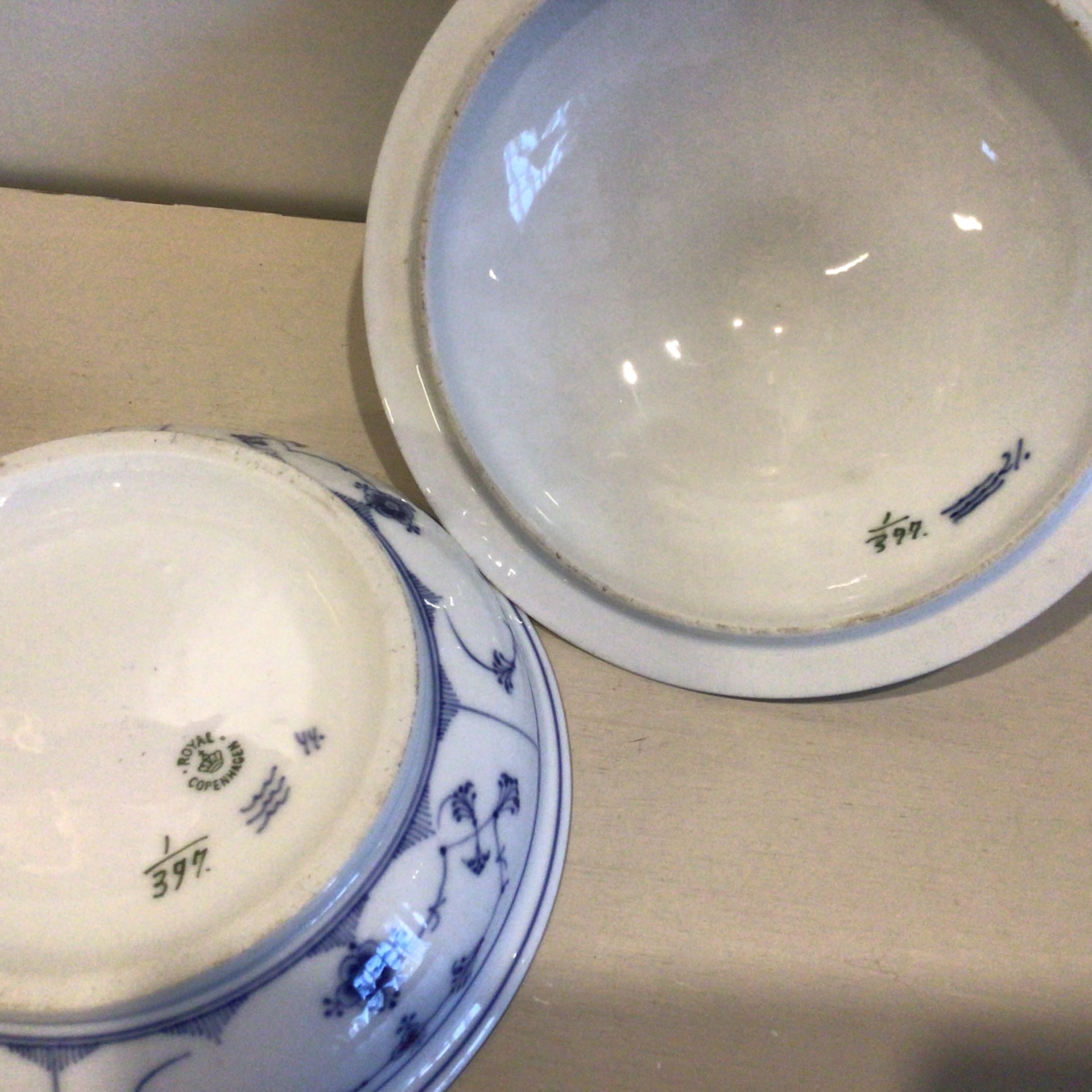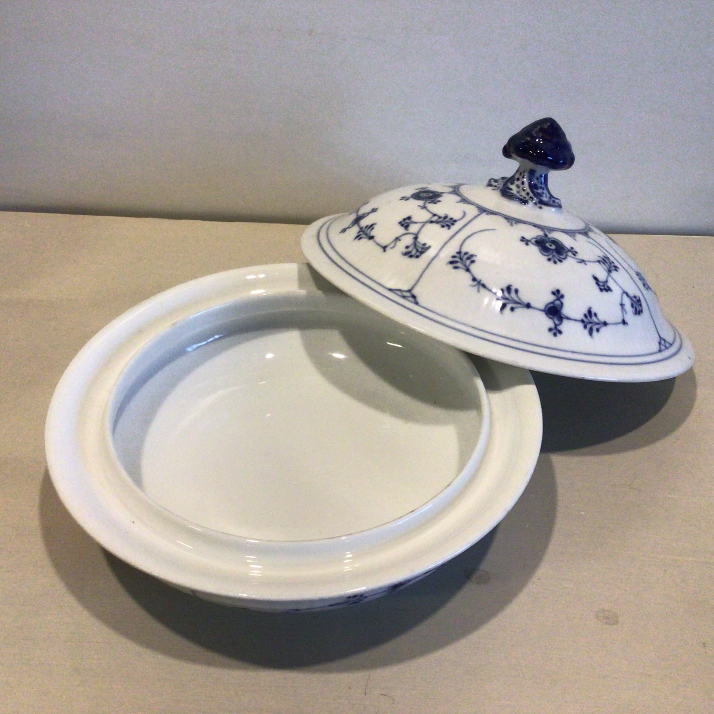Royal Copenhagen Musselmalet riflet lågfad #397. Rundt musselmalet