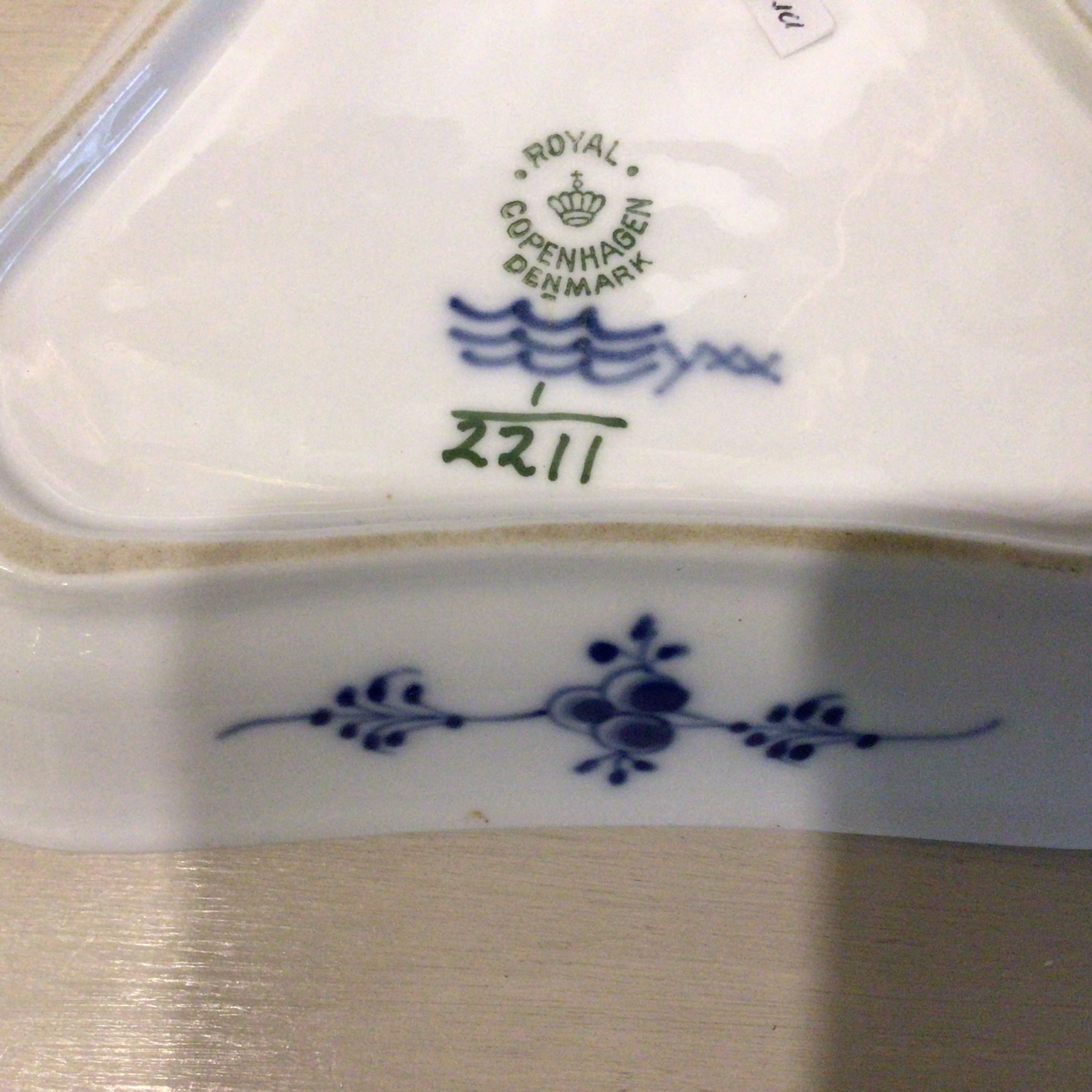 Musselmalet riflet trekantet asiet #2211 er i Kongeligt håndmalet