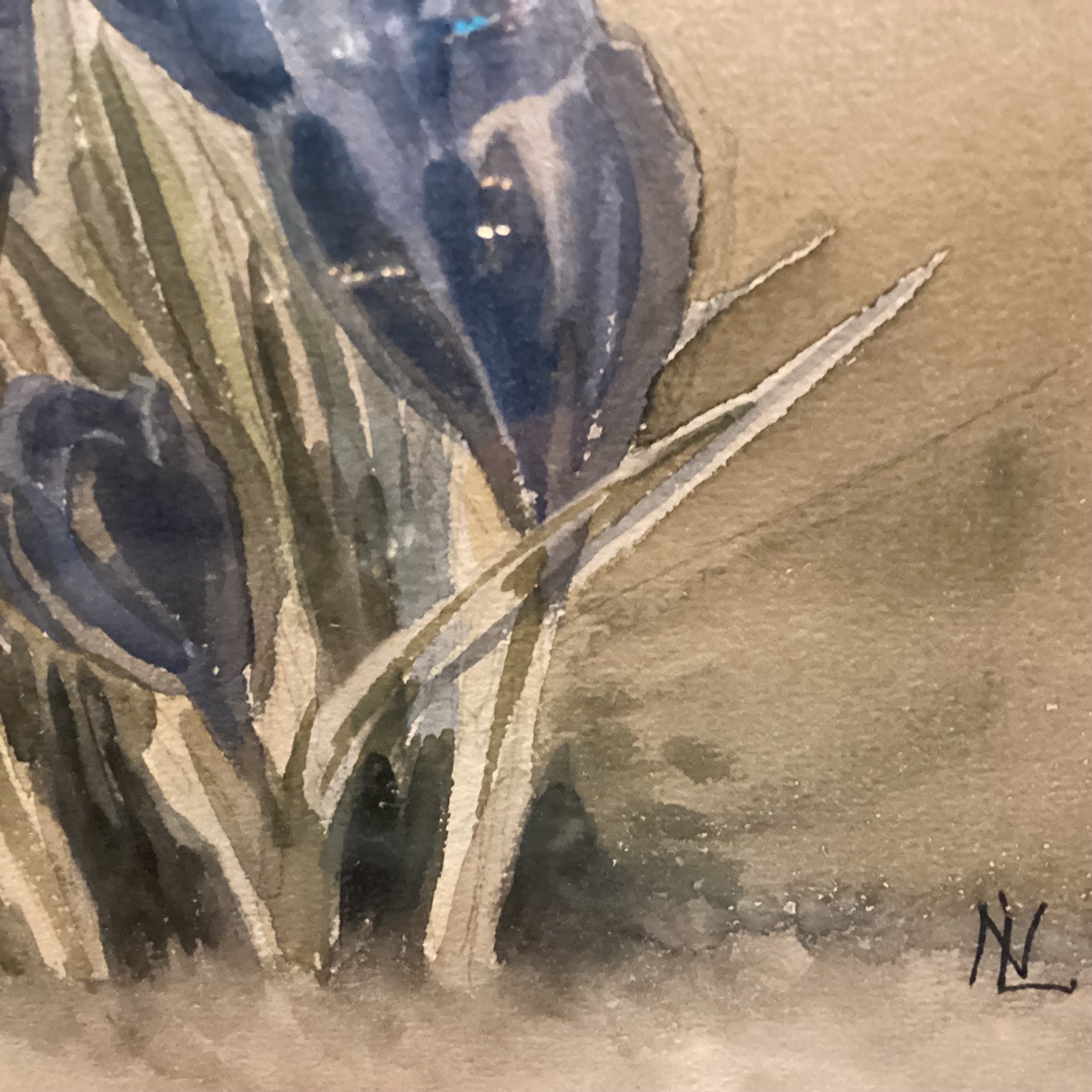 Niels Aagaard Lützen akvarel Blå Krokus. Niels Aagaard Lützen