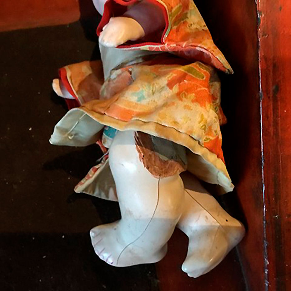 Fin orientalsk dukke i kimono. Ben har reparation.