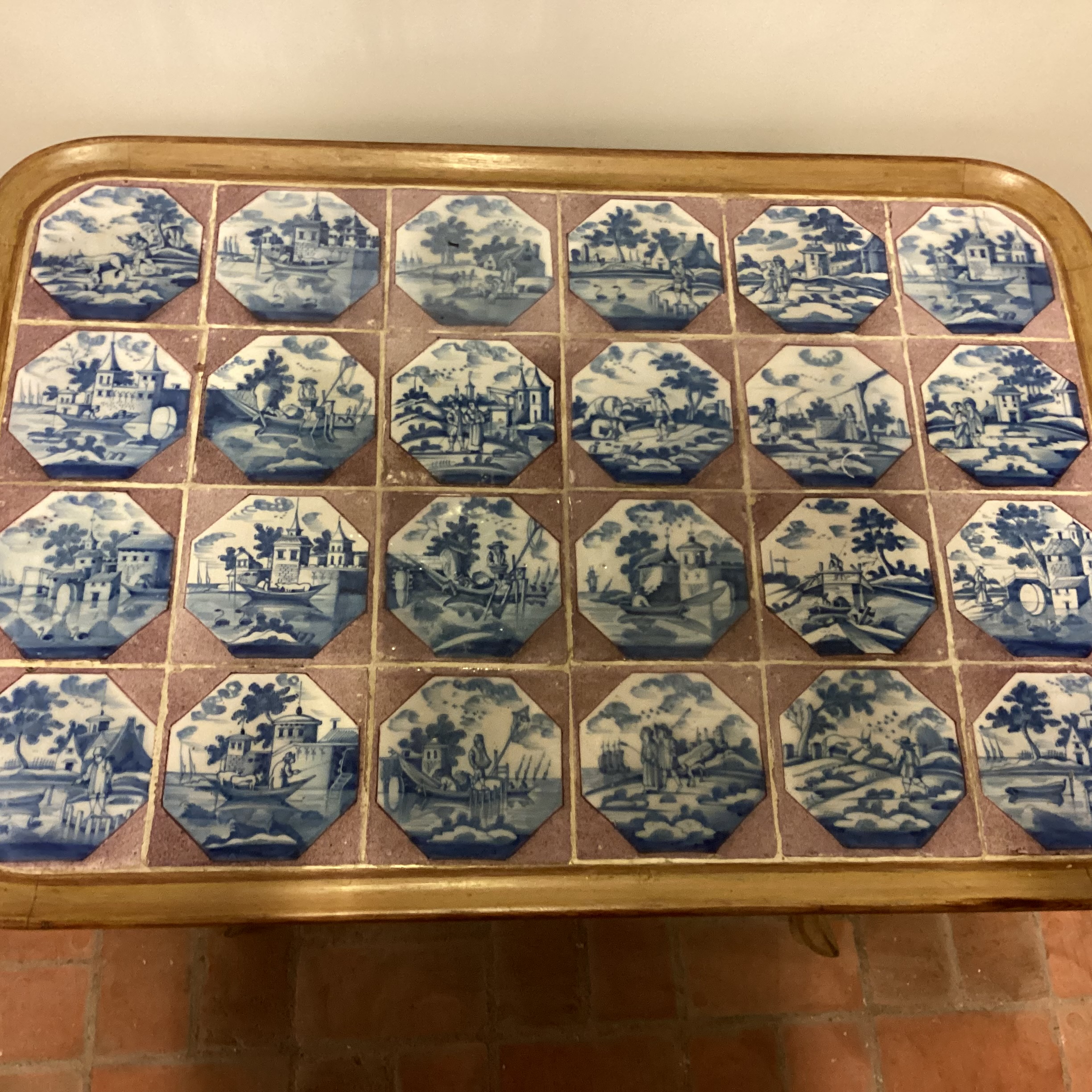 originaldekoreret Rokoko Flisebord Danmark ca. 1760 har en fin gylden