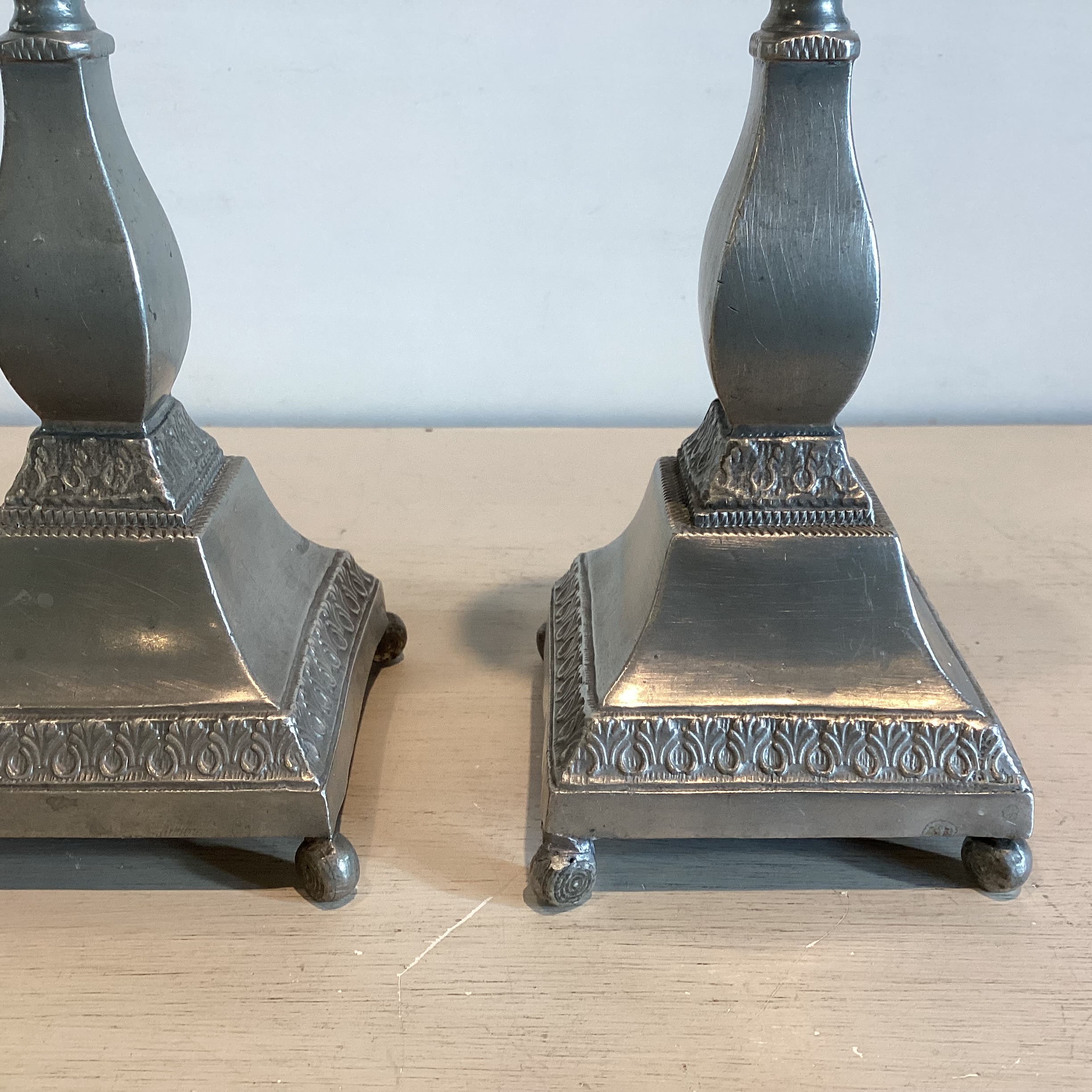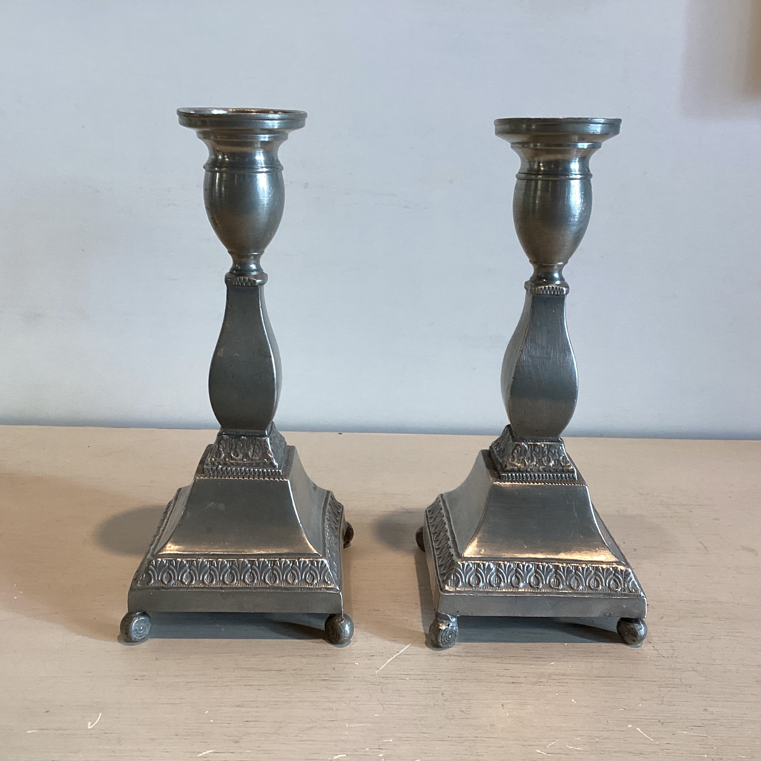 Par antikke Tin Lysestager. Et par antikke Tin lysestager hver på fire