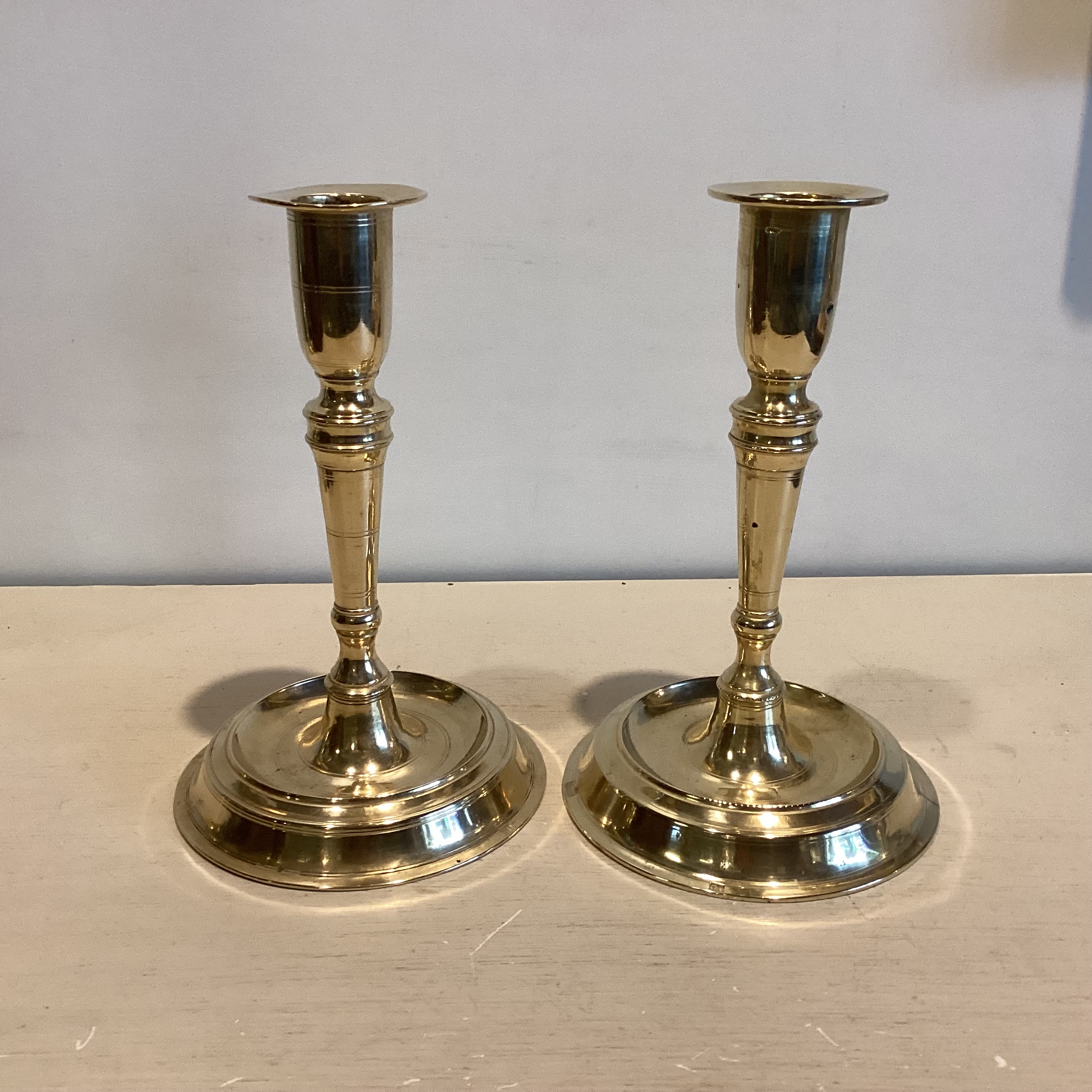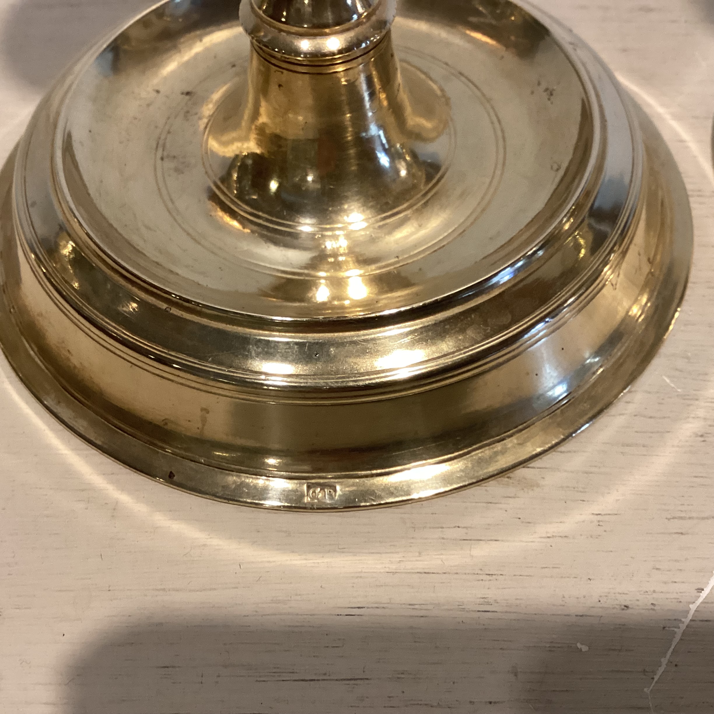lysestager på rund fod – stemplet nederst på kanten og