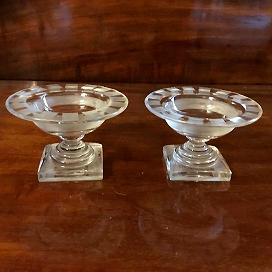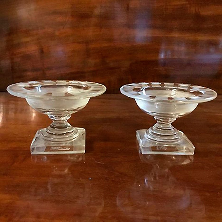 Et flot par saltkar i krystal. De fine saltkar er formet som små opsatse
