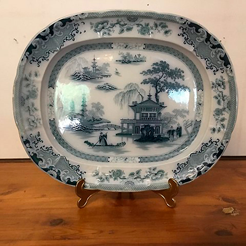 Stort flot engelsk porcelænsfad. Bundfarven er hvid med kinesisk dekoration